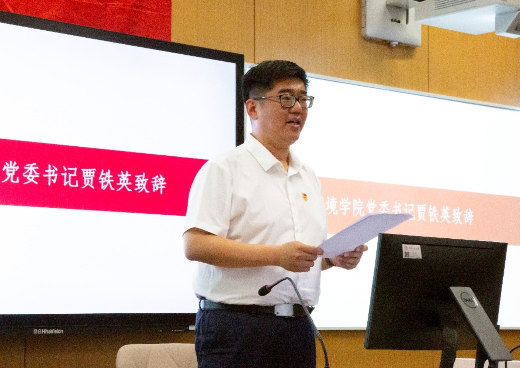学院党委书记贾铁英代表学院党委对本次学代会、研代会的组织召开表示祝贺,他充分肯定了同学们在打造学校特色品牌、丰富校园文化活动、提高学生综合素质方面取得的显著成果,代表学院对即将离任的学生会、研究生会主席团以及各位学生骨干表示了衷心的感谢。贾铁英表示,青年是新时代的复兴主力军,更是保障学生工作开展的坚实力量,希望新一届主席团成员能传承上一届主席团创新奋斗的精神,开拓进取,做好同学们的榜样,团结带领学院的学生会、研究生会不断进步,提升为同学们服务的能力。贾铁英也代表学院党委向大家提出了四点希望和要求:一是坚定信念,树立宏大志向;二是修身立德,提升综合素质;三是笃学善思,提升能力本领;四是不负韶华,勇担时代重任。最后,贾铁英希望大家在奋斗中释放青春激情,追逐青春理想,为民族复兴铺路架桥,为祖国建设添砖加瓦。