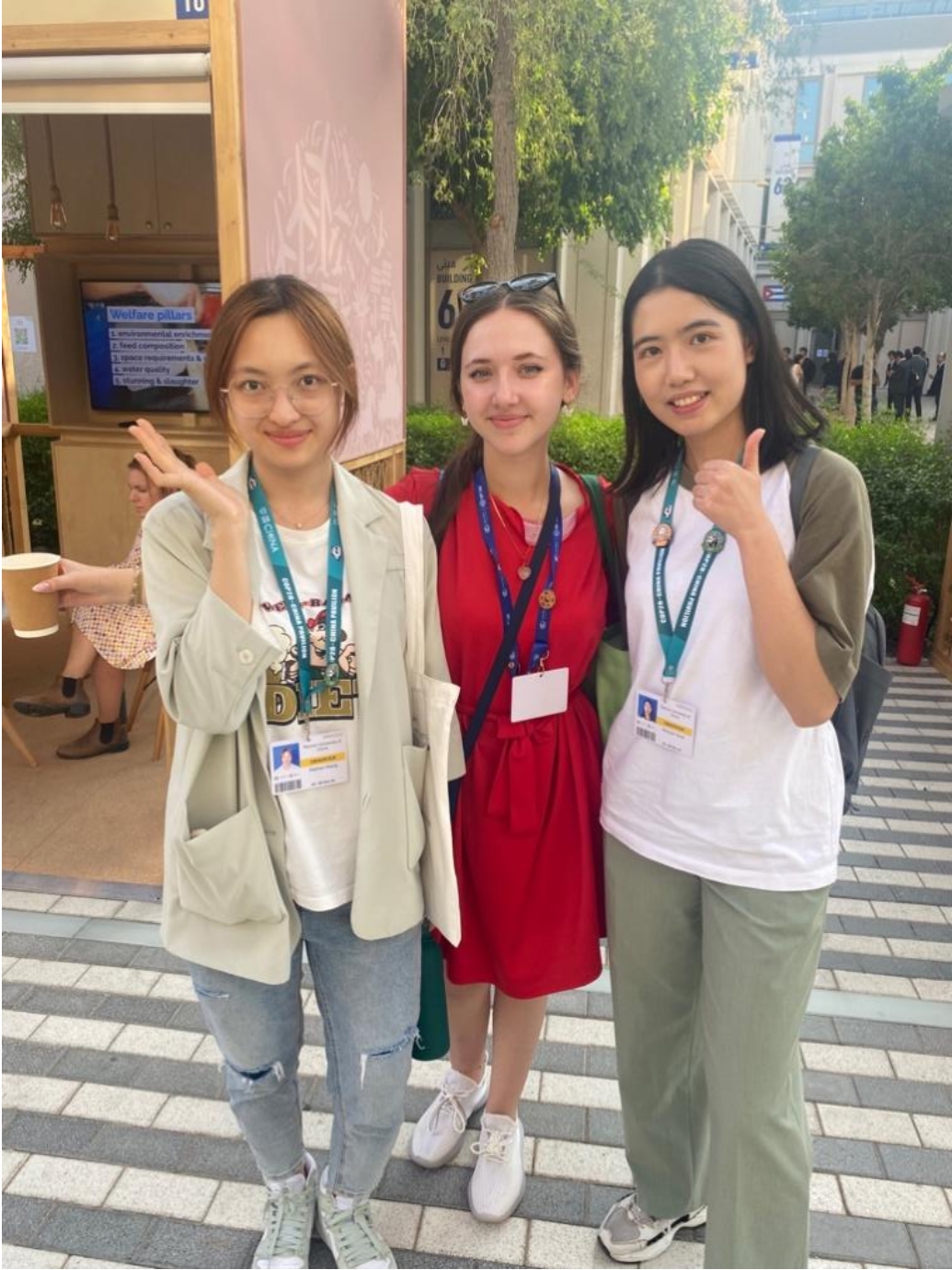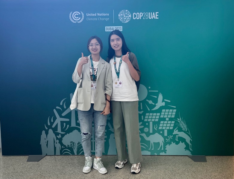 From November 30th to December 12nd, 2023, the 28th Conference of the Parties to the United Nations Framework Convention on Climate Change (COP28) was held in Dubai, United Arab Emirates. From December 3rd to December 6th, supported by the “Global Environmental Governance” project of the Academic Affairs Office of Renmin University of China, a delegation comprising Associate Prof. WANG Ke from the School of Environment & Natural Resources of Renmin University of China and two students from the Mingde Environment “Economics-Science” Elite Talent Experimental Class, including undergraduate students SHAN Wenyann from the class of 2021 and WANG Meihan from the class of 2022, visited the Dubai Expo City in the United Arab Emirates. They attended COP28 as youth observers, participated in climate negotiations, visited various thematic pavilions, and explored national Pavilions from different countries.