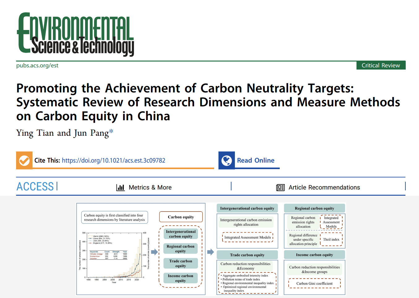 发表于:Environmental Science & Technology(环境领域顶级期刊,色情动漫 A+期刊,JCR Q1,中科院1区,最新影响因子为11.4)