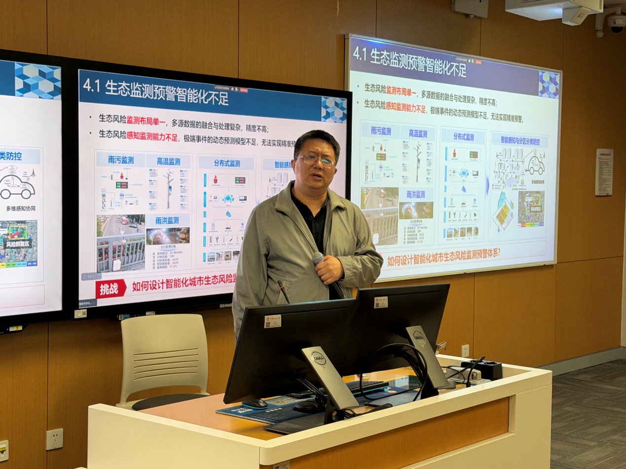 接下来,陈彬教授结合遥感、物联网、社交媒体大数据及人工智能等感知技术革新,深入阐释了生态风险监测与韧性评估在方法论上的差异,指出前者面临生物多样性连续监测成本高昂、技术难度大等挑战,更需要多要素、分布式监测网络的系统支撑;后者则强调系统在遭受冲击后维持动态平衡、自我修复及可持续发展的能力,其评估逻辑具有显著的多尺度与跨学科特征。城市生态风险治理不能仅停留在单一环境污染物风险评估层面,而应更加重视基于自然的解决方案(NbS)与蓝绿灰基础设施的耦合协同,将洪涝应对、热岛效应缓解、生物多样性保护与社区公平包容纳入整体韧性提升框架之中。进一步,通过案例说明了城市生态风险模拟是一项涉及标准体系建设、损失量化不确定性、区域发展公平与跨尺度协同治理的复杂系统工程。