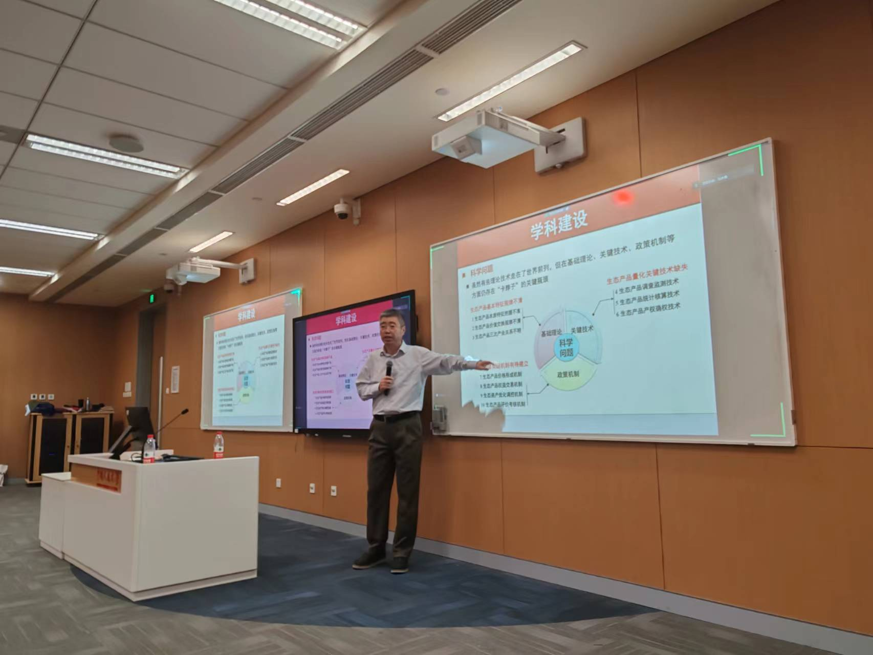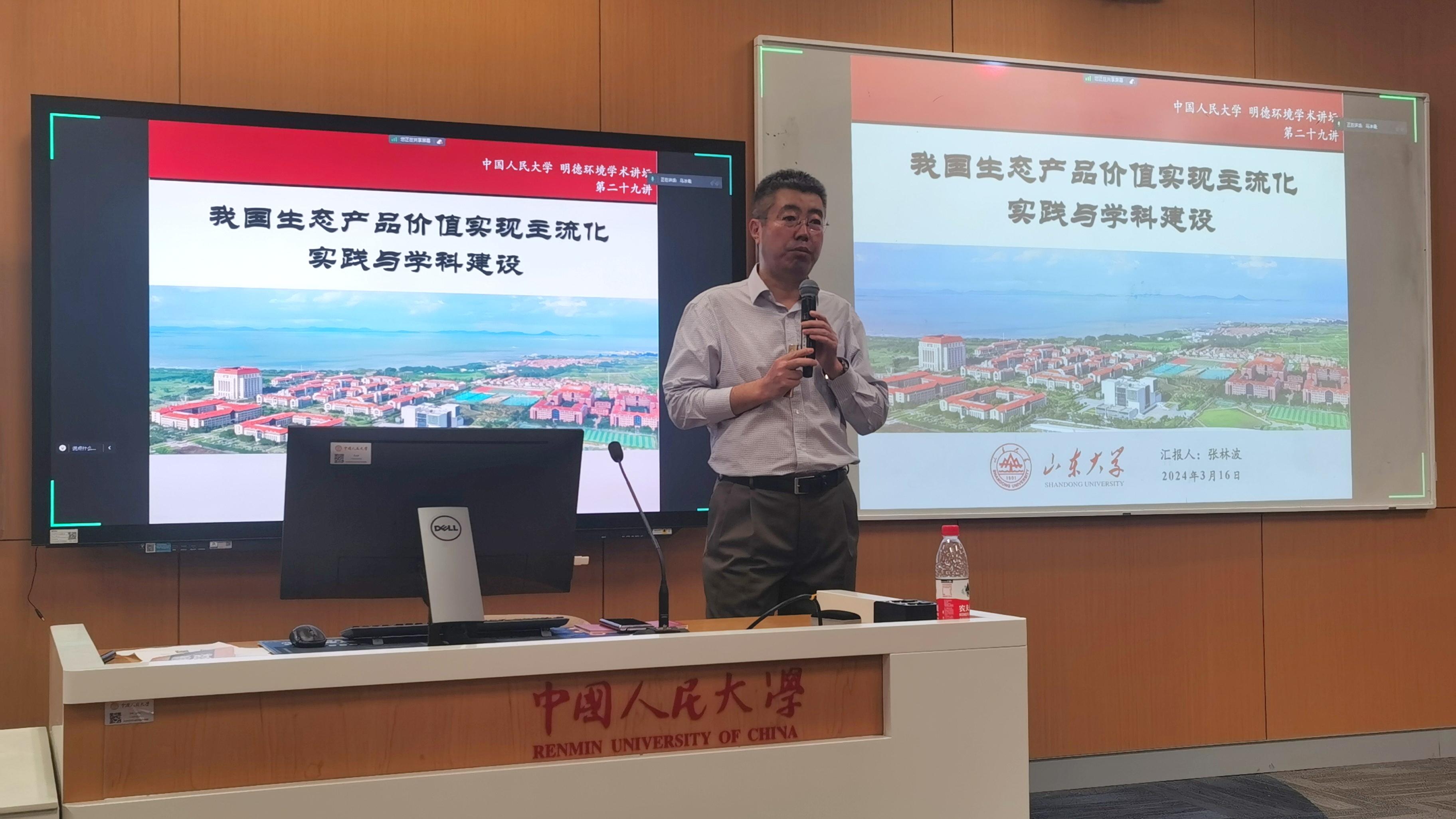 最后,张林波教授对涉及生态产品价值实现学科建设的重要方面进行了阐述。他指出,建设生态产品价值实现学科是党和国家的明确要求,是社会经济发展重大需要,是打造新文科具体举措。生态产品价值实现的学科内涵是以绿水青山与金山银山的转化机制为研究对象,综合应用环境科学、生态学、理论经济学、管理学等相关学科的理论、方法和技术,研究生态产品价值实现基础理论、量化技术、政策机制等科学问题,从而解决生态环境的外部性问题。该学科目标是培养具备生态产品价值实现研究和实践能力的专业人才,能够在政产学研各个方面从事科学研究、咨询服务、经营管理、宣传教育等工作。