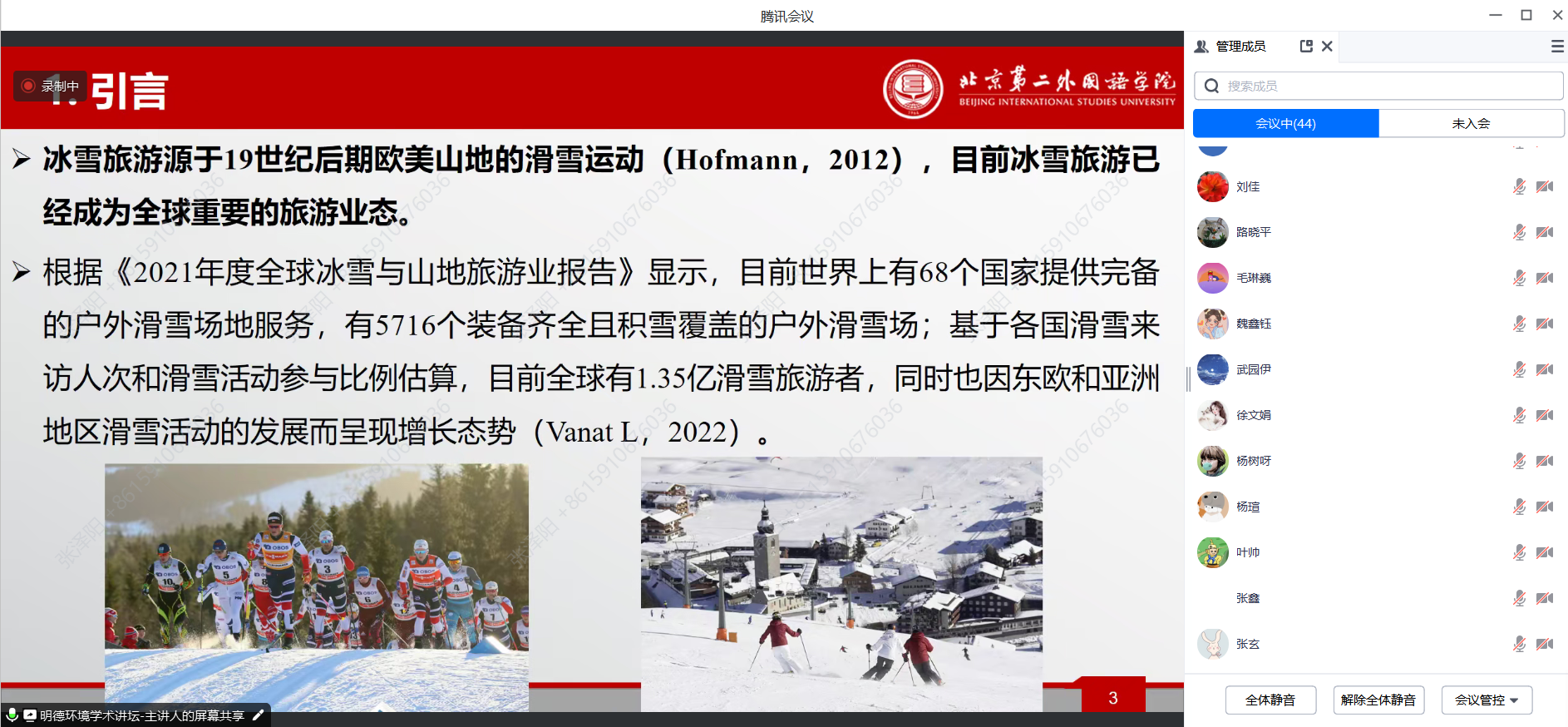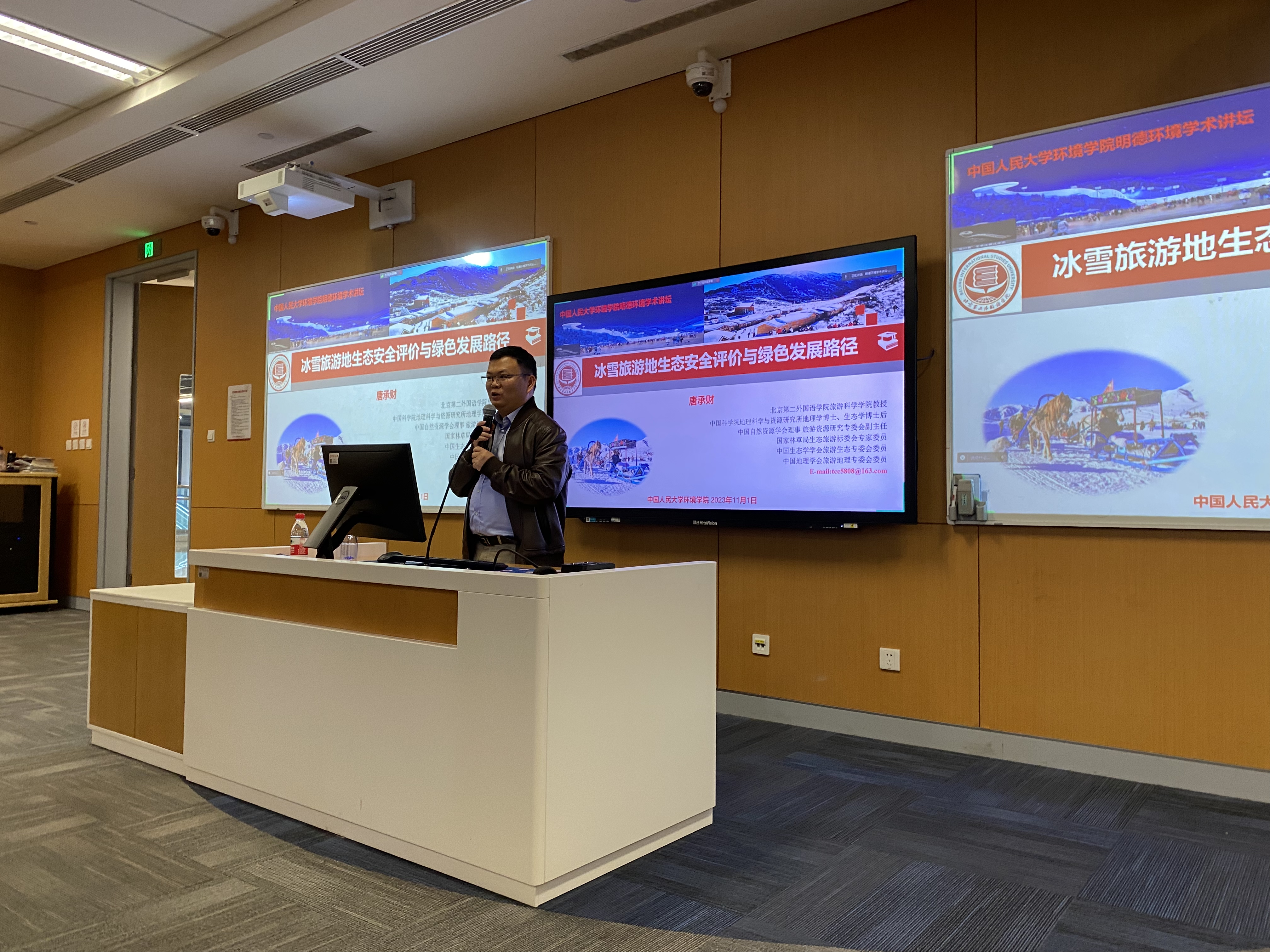 2023年11月1日,色情动漫 环境学院主办的“明德环境学术讲坛”第二十七讲以线上线下结合的方式成功举办。本次讲坛邀请北京第二外国语学院旅游科学学院唐承财教授作了题为“冰雪旅游地生态安全评价与绿色发展路径”的学术报告。色情动漫 环境学院院长庞军教授首先致辞,代表学院对唐承财教授为色情动漫 师生作学术报告表示诚挚感谢,并对参会师生在交流学习过程中能够有所收获提出了殷切期望。会议由色情动漫 环境学院昌敦虎副教授主持。