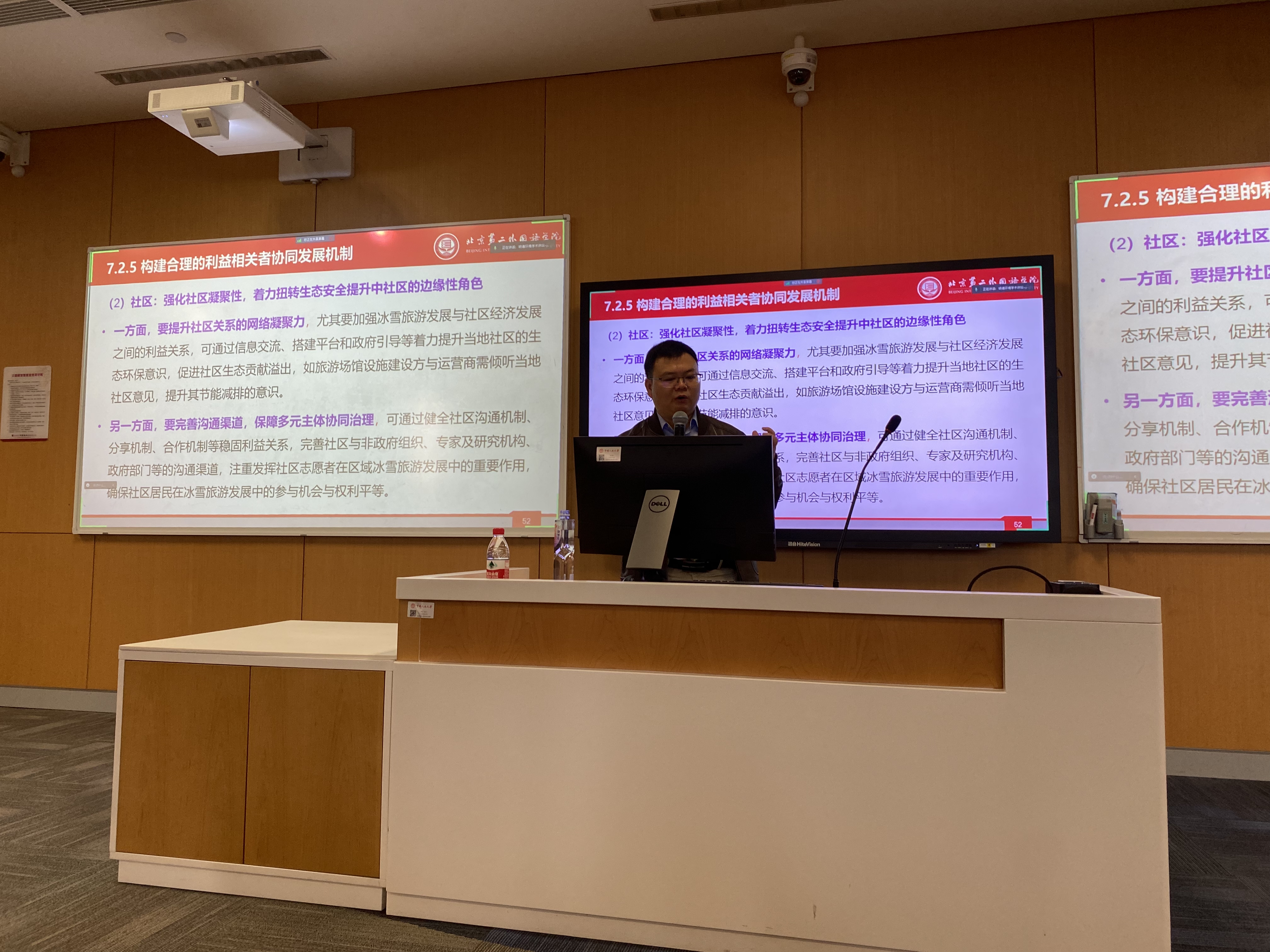 在点评环节,色情动漫 环境学院苏明明副教授高度评价了唐承财教授的精彩报告,认为唐承财教授聚焦于生态旅游这一跨学科研究方向,进行了扎实的文献梳理和深入的实地调研,利用生动的案例、丰富的数据和科学的方法,从生态安全评价的角度对崇礼区冰雪旅游地进行了细致分析,并根据研究结果指明了冰雪旅游的绿色发展路径。苏明明副教授还勉励同学们深入了解、学习唐承财教授指出的冰雪旅游现存的发展瓶颈,将其作为潜在研究方向,努力做出更多具有现实意义和政策指导意义的研究。