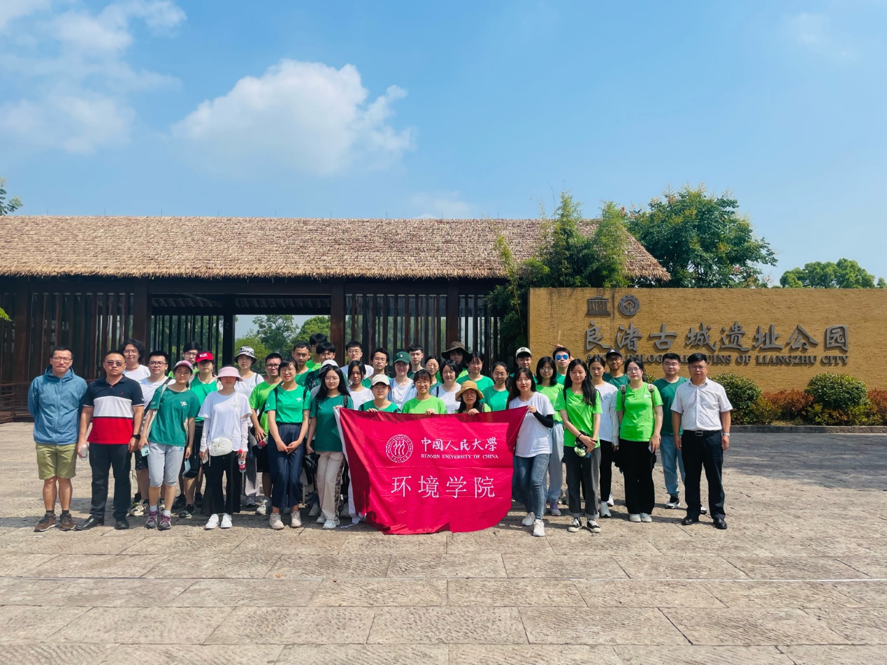 实践团队依次参观了河道作坊遗址、反山王陵墓地等古城遗迹。据了解,良渚古城遗址公园在2020年创新实施了生态立体修复工程,对园区进行了系统的“山水林田湖草综合整治生态修复”,实现了文物保护与水生态环境改善的双赢。此外,良渚古城外围水利系统,是迄今所知中国最早的大型水利工程,也是世界最早的水坝。师生在考察中从历史的角度思考人与自然、人与环境的关系,站在漫长的时间维度上回顾自然环境的变迁。