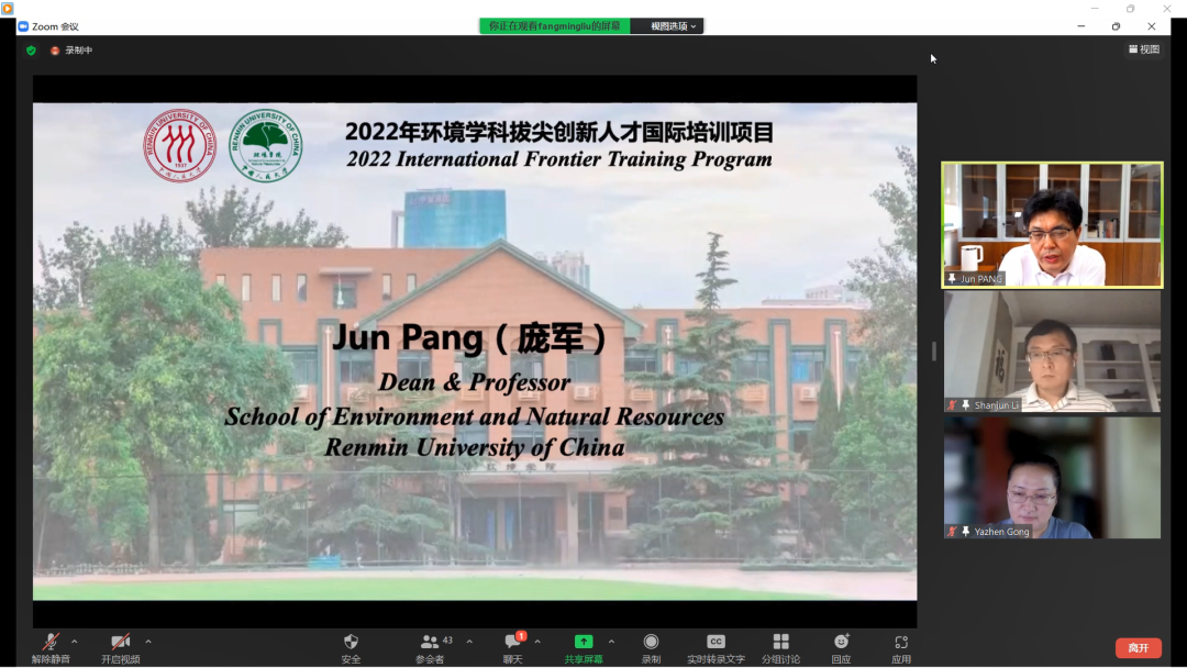 色情动漫 环境学院 “环境学科拔尖创新人才国际培训项目”首期启动仪式于2022年7月11日上午在线举行。本项目受色情动漫 教务处2022年本科教育教学改革项目资助,旨在通过引进海外一流高校的优质教育资源,助力明德环境“经济学-科学”拔尖创新人才培养。