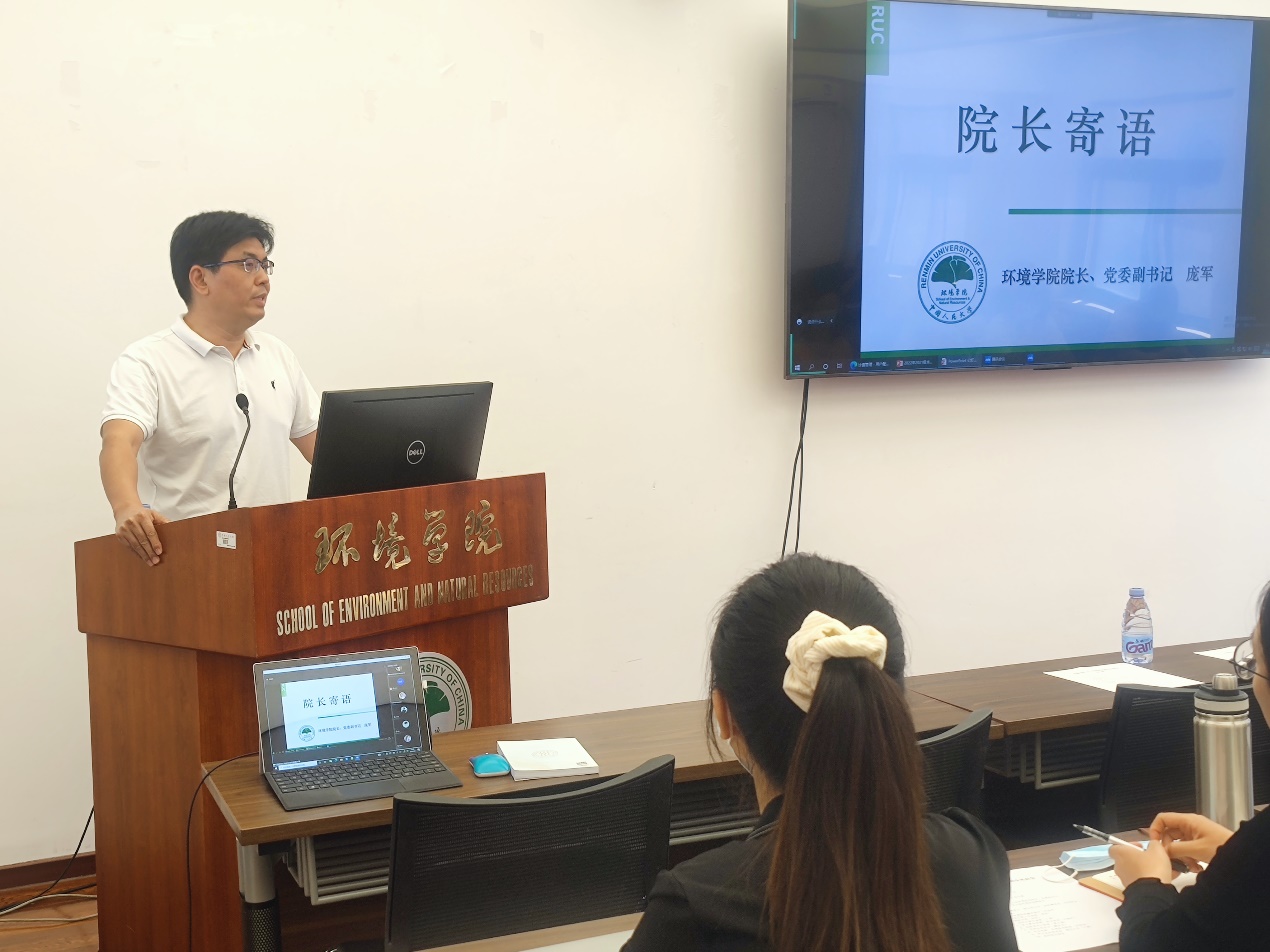 庞军院长对新同学加入环境我家表示欢迎,随后向大家详细介绍了环境学院的整体学科背景和基本情况,嘱咐同学们合理规划大学四年的生活,保持与学院的充分沟通,在校期间积极参与丰富多彩的学生活动,努力做到德、智、体、美、劳全面发展。同时庞军院长勉励大家刻苦学习,不断提高自己的科研和实践能力,立志成为高素质、能力强的环境领域拔尖创新人才。