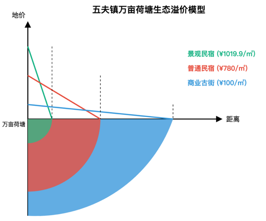 VEP核算以“需求倒逼技术迭代”为突破路径。3月24日至27日,指导老师张诗卉带队深入五夫镇万亩荷塘、兴贤古街等核心区,通过“空间梯度对比法”,将五夫镇万亩荷塘划分为三个圈层:第一圈层为景观酒店,第二圈层为商业地产(民宿),第三圈层为古街(商业店铺),发现地价从荷塘中心向外递减规律,印证生态文化溢价效应。“生态不是背景板,而是定价要素。”团队成员沈琬钦在调研手记中写道。
