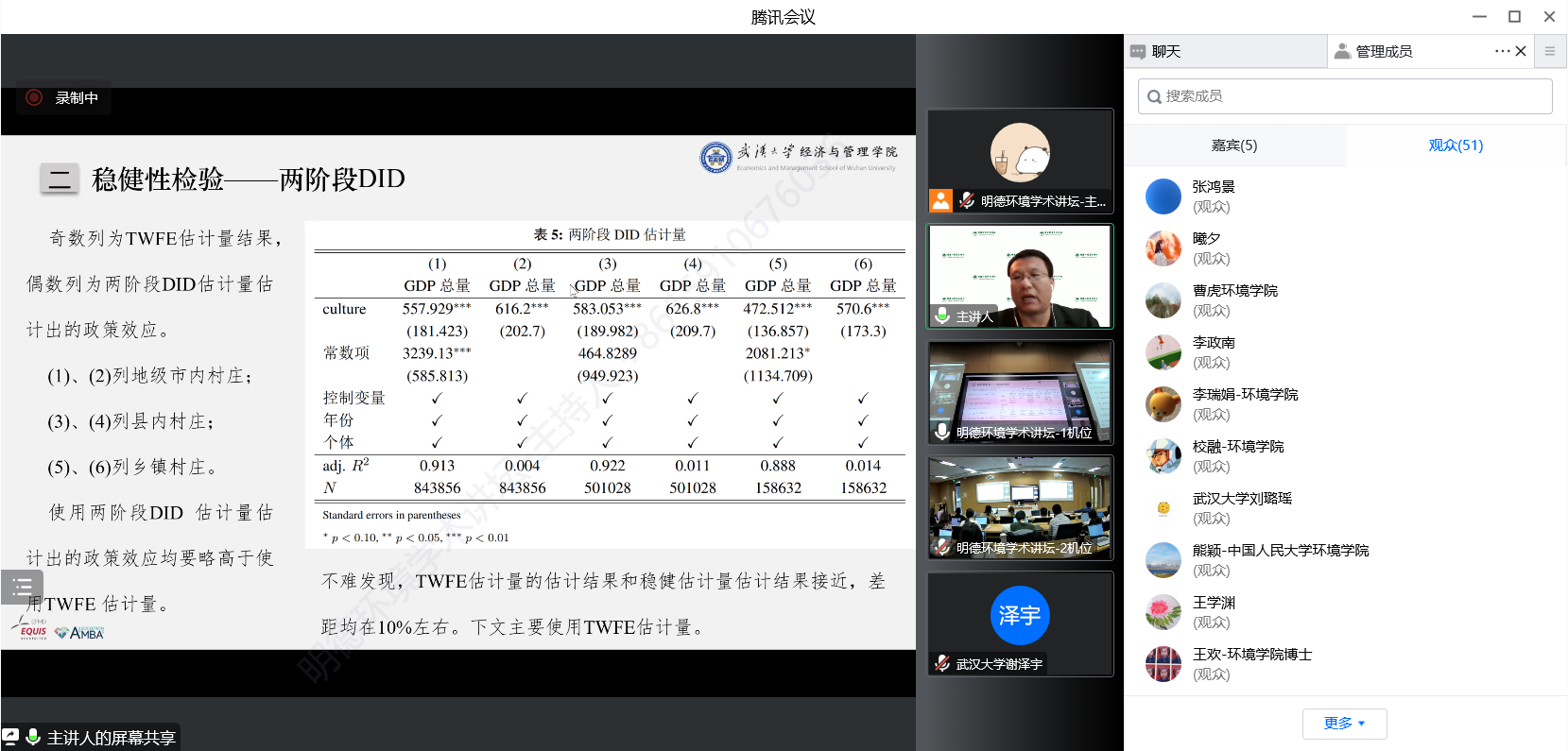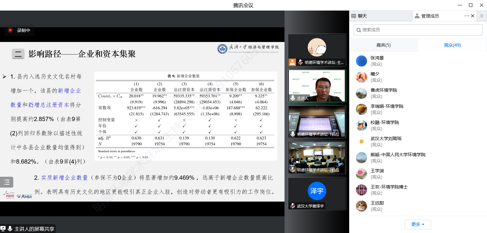 最后,色情动漫 环境学院苏明明副教授进行了点评。苏明明副教授指出,杨冕教授团队的研究从经济发展、环境保护等维度入手,运用严谨的经济学理论框架量化分析了历史文化保护对乡村绿色发展的影响,并勉励同学们在研究工作中以杨冕教授为标杆,通过充分的背景挖掘、概念界定和文献梳理为实证设计打下扎实基础,在完善的理论框架下开展规范的数据处理与实证分析,提高研究的科学性与严谨性。