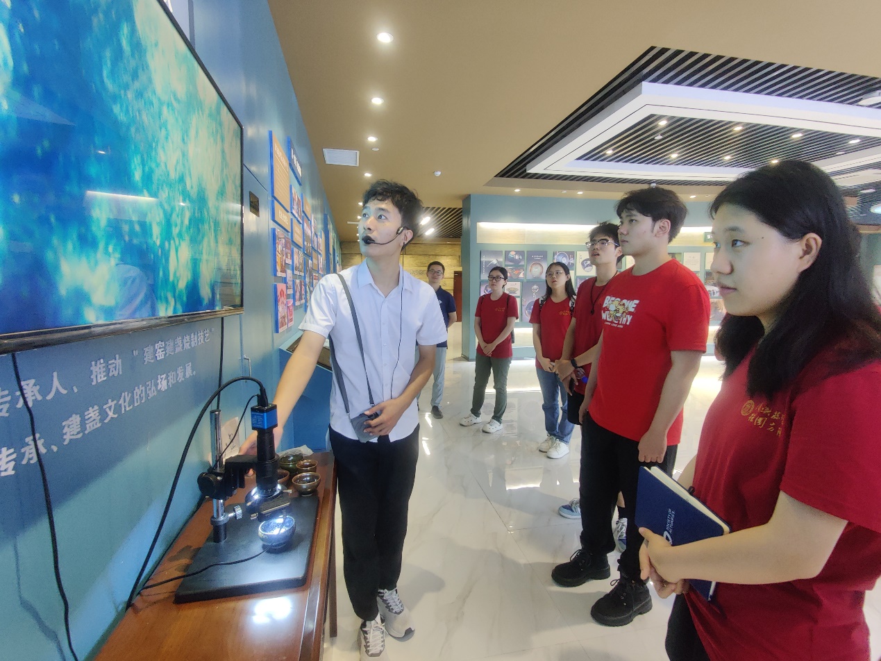 李雯相(2023级本科生):“兔毫连盏烹云液,能解红颜如醉乡。”这次调研中,建盏文创园给我留下了深刻的印象,在文创园讲解员的细致解说下,我对建盏的历史兴衰和文化内涵有了更深入的了解。建盏作为南平市建阳区的特产,其制作工艺精湛,每一件建盏都承载着千年的文化沉淀,蕴含着匠人的心血。看着如星空般闪耀的建盏釉面,一股自豪在我心中油然而生,放大镜下的各类建盏光彩夺目:油滴、兔毫、乌金……这些作品不仅是艺术品,更是中国文化的瑰宝。“中华优秀传统文化是中华民族的精神命脉。”相信通过政府的扶持和手工艺人的传承,建盏文化的创造性转化和创新性发展将得到进一步推动,建盏文化之美也将生生不息。