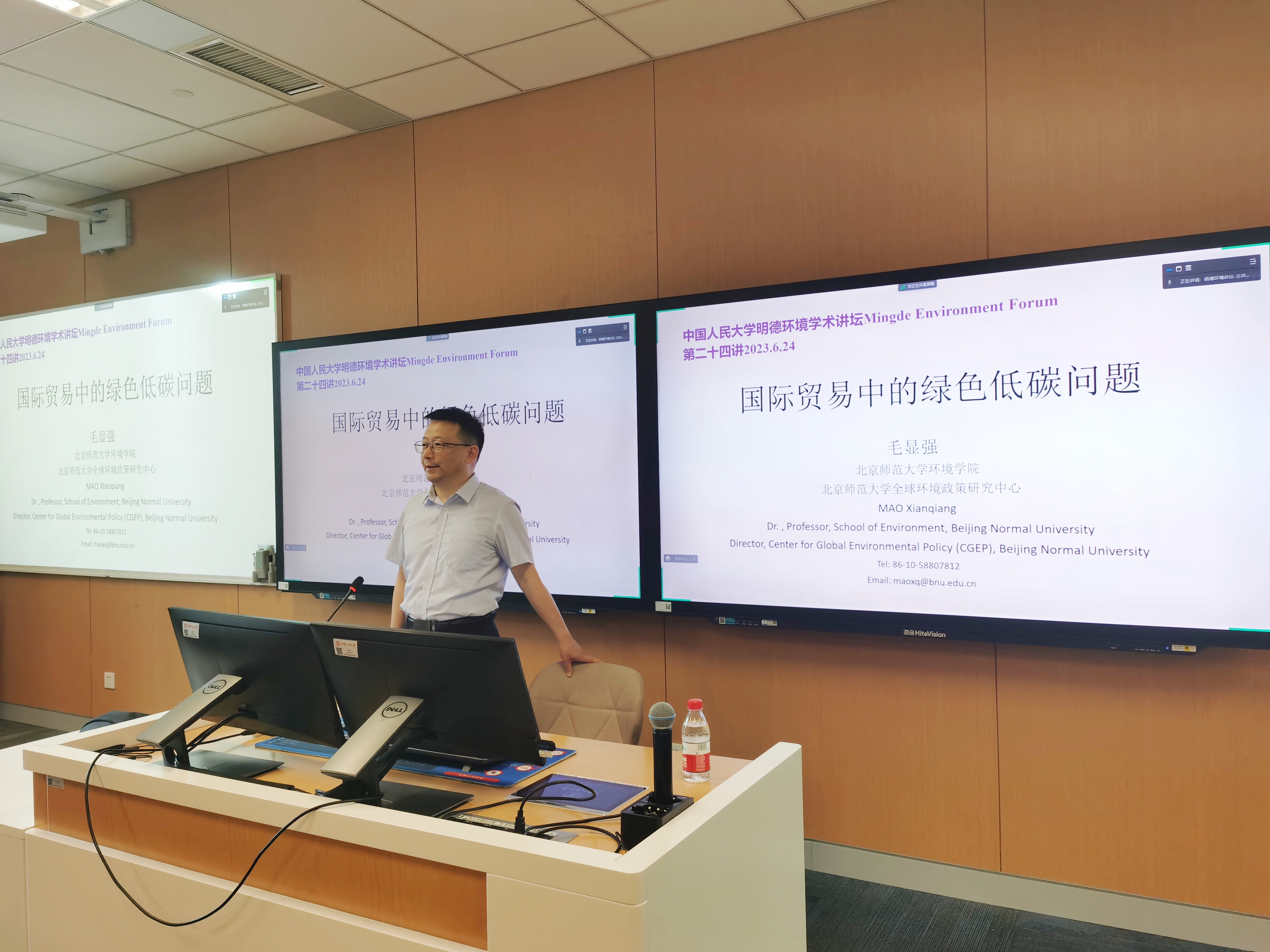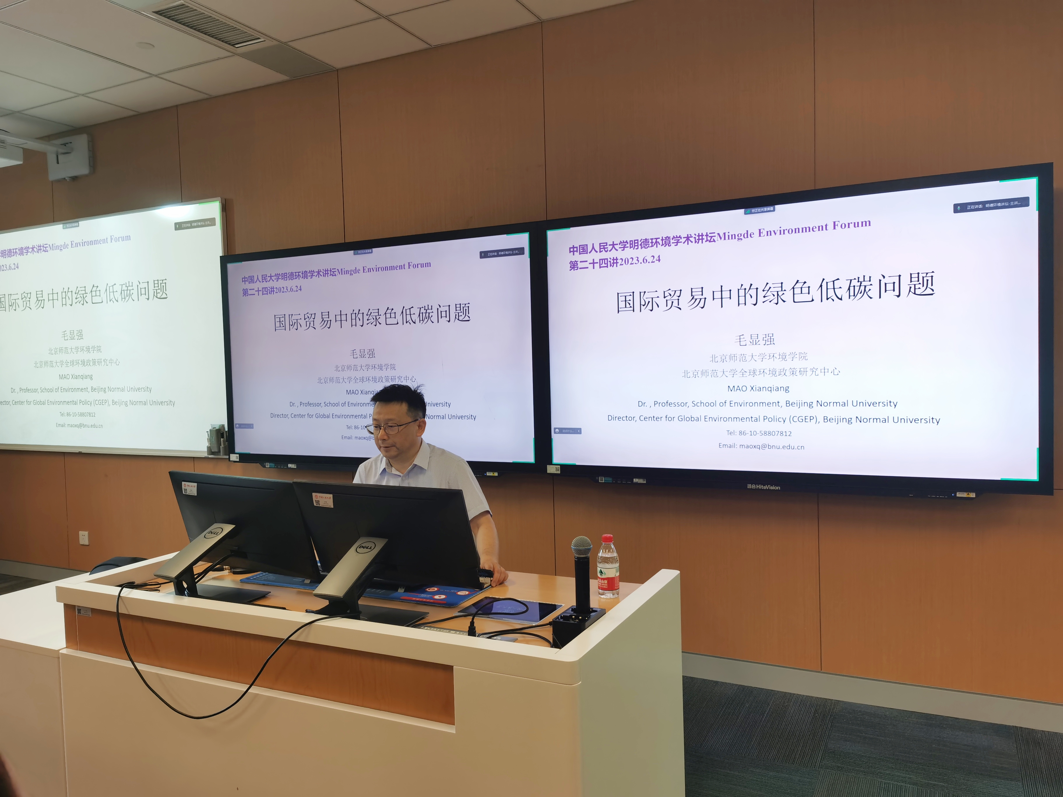 最后,毛显强教授从理论角度讲授其研究团队取得的多项研究成果。在产品贸易及贸易政策对环境的影响层面,以乳制品生产消费的碳排放为例,通过反事实分析及局部均衡模型探究了全球乳制品贸易及隐含碳排放的格局和对全球温室气体排放的影响,发现国际贸易促进了分工和专门化,从而有利于碳减排;在光伏产品贸易的碳减排潜力方面,揭示了光伏产品“生产排碳”和“应用减碳”两个过程是并存的,光伏产品贸易的加深会导致这两个过程的空间分离,同时加剧光伏产品贸易保护现象。毛显强教授对全球化进程下的国际贸易绿色低碳水平提升进行了展望,并提出促进绿色低碳贸易、携手构建人类命运共同体的重要意义。