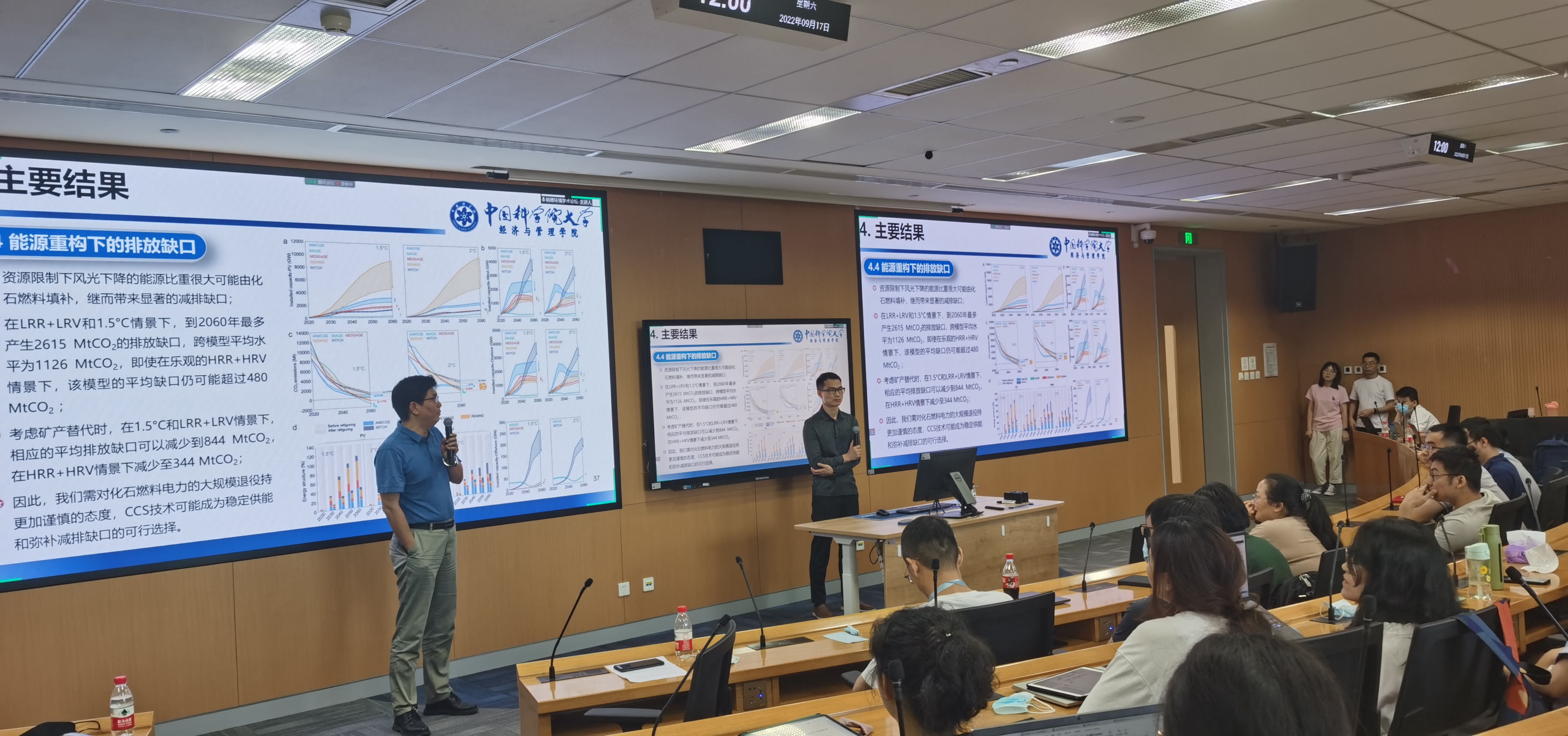 在交流讨论环节,来自线上线下的多位高校师生针对学术报告中关于模型设定、数据来源、材料替代影响以及未来气候变化综合评估模型的发展方向等问题,与段宏波教授进行了深入探讨,气氛活跃,师生反响热烈。