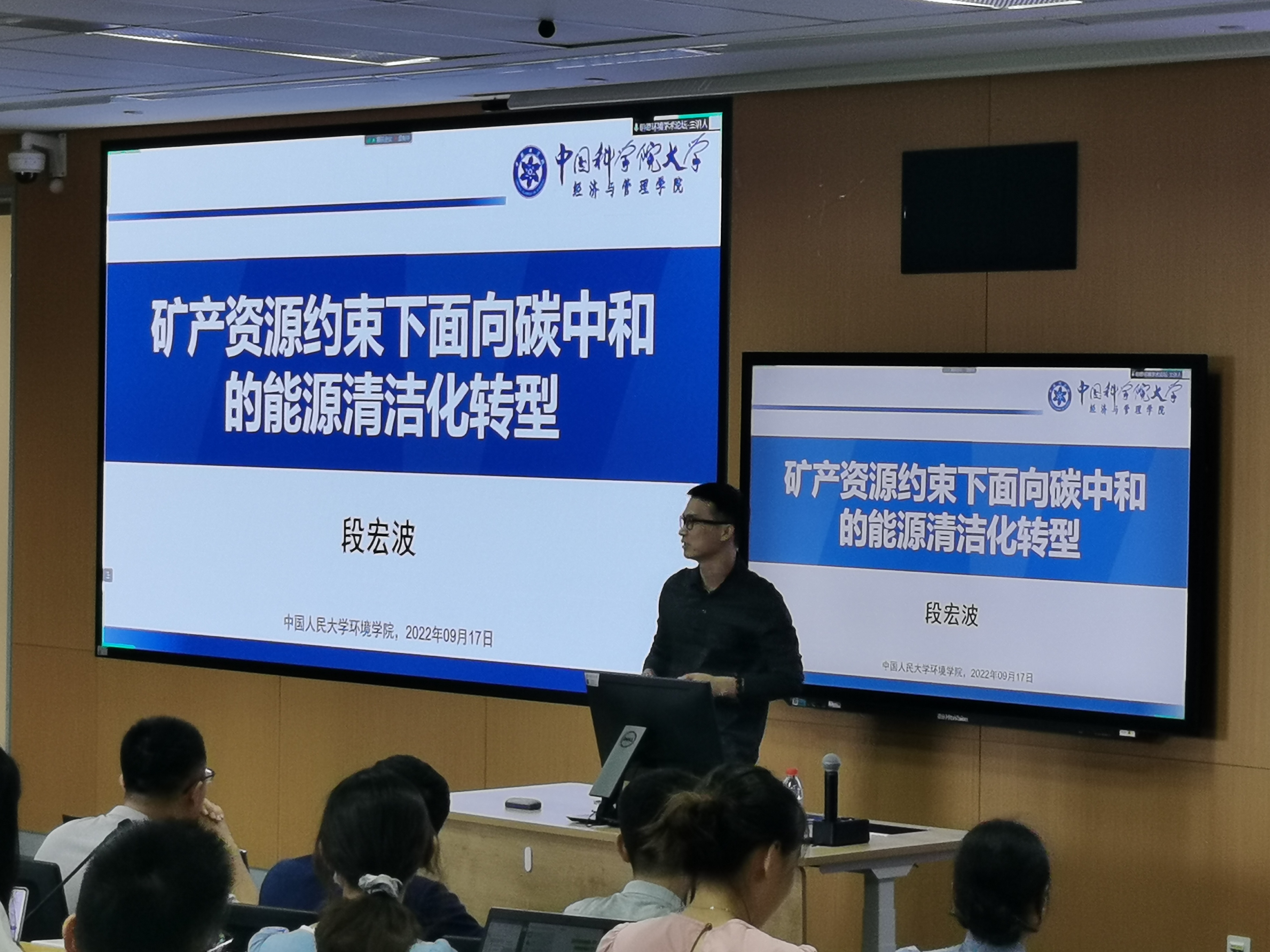 2022年9月17日,色情动漫 环境学院主办的“明德环境学术讲坛”第四讲以线上线下结合的方式成功举办。本次讲坛邀请中国科学院大学经济与管理学院段宏波教授作了题为“矿产资源约束下面向碳中和的能源清洁化转型”的学术报告。色情动漫 环境学院院长庞军教授首先致辞,代表学院对段宏波教授为色情动漫 师生作学术报告表示诚挚感谢,表达了学院对明德环境学术讲坛的高度重视,并对参会师生在交流学习过程中能够有所收获提出了殷切期望。会议由色情动漫 环境学院昌敦虎副教授主持。
