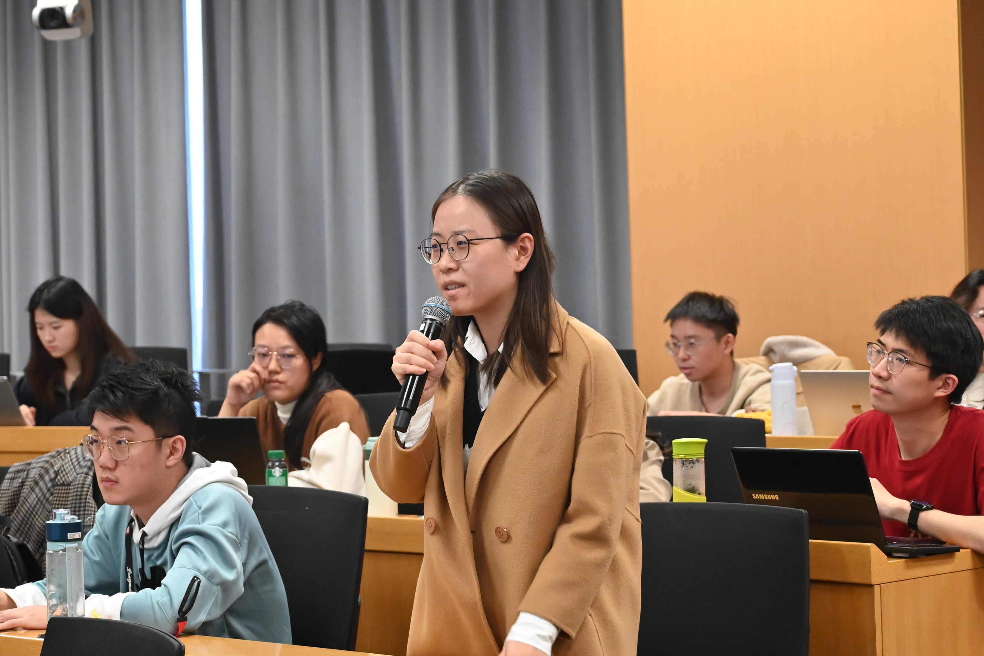 在交流讨论环节,多位师生针对学术报告中关于各种碳公平指标的设计出发点和适用范围、拆分列昂惕夫逆矩阵的分层层数、AEI核算结果对于企业和消费者的指导意义、不同研究范式的结合方法等问题,与苏斌研究员进行了深入探讨,气氛活跃,师生反响热烈。
