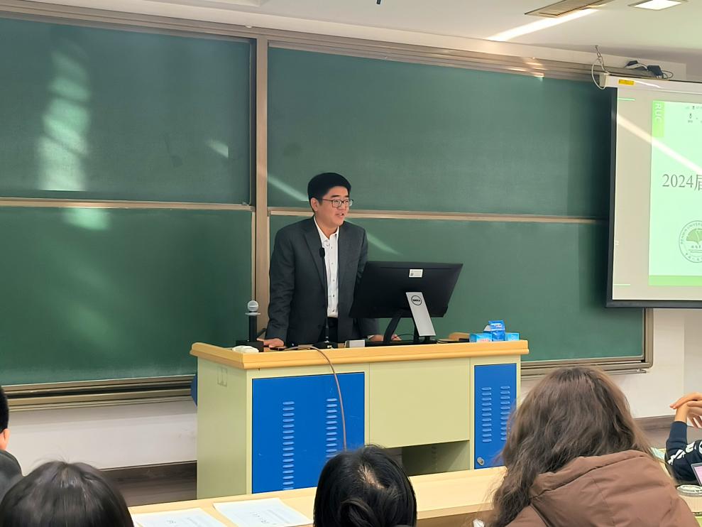 12月1日下午,环境学院2024届毕业生就业动员大会在明徳法学楼501教室举行。学院党委书记贾铁英、党委副书记于媛、就业辅导员王翔宇以及全体2024届毕业生参加会议。会议由王翔宇老师主持。