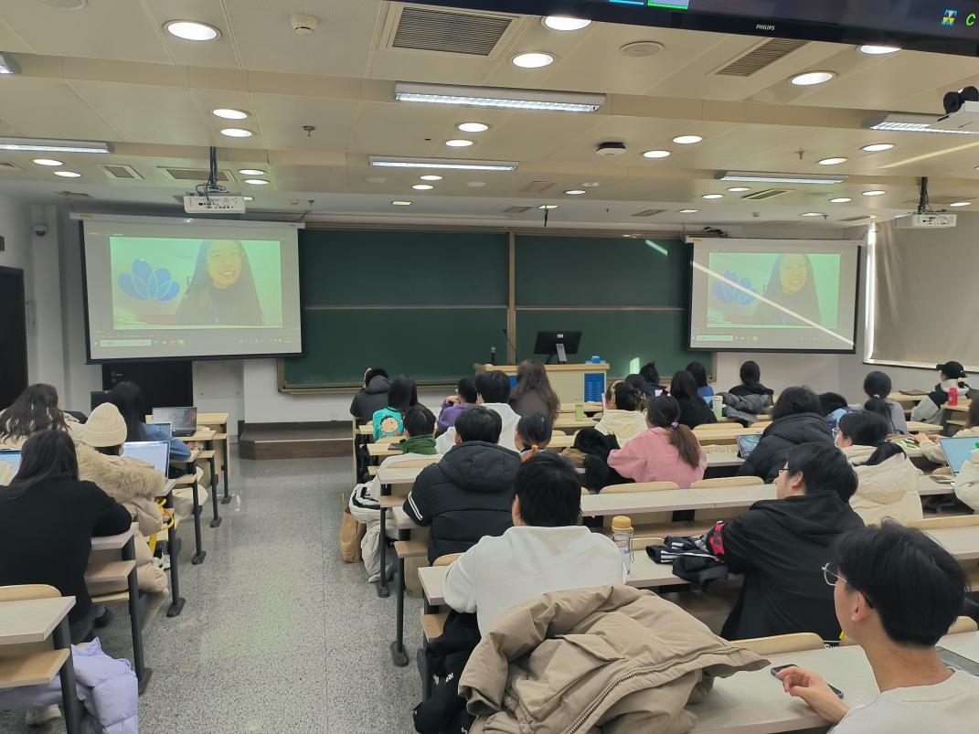 活动最后,2023届优秀博士毕业生代表王玥受邀线上参加大会,她结合自身求职经历与现有工作经验,以HR的视角向同学们作分享,帮助大家缓解焦虑情绪,并提醒大家“适合自己的就是最好的”,帮助同学们正确认识就业形势,提前做好准备。