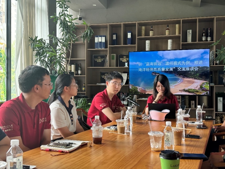 座谈会交流研讨环节中,调研团成员就“蓝色循环”海洋塑料污染治理模式中的“蓝海驿站”的建设难点、公众对于回收材料的接受度等多个话题与温州市生态环境局海洋处副处长戴文超进行了深入探讨。戴处长在回应中指出温州市参与“蓝色循环”的企业普遍具有“分布分散、规模较小”的特点,而公众意识在未来依旧有待提升。