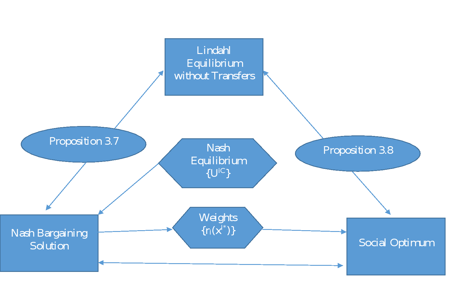 基于此,杨自力教授创新性地在模型中引入了林达尔原则(Lindahl principle),通过严格的数学证明找到了林达尔原则下气候合作联盟的无转移支付均衡解,并给出了这一结果的简洁数学表达。