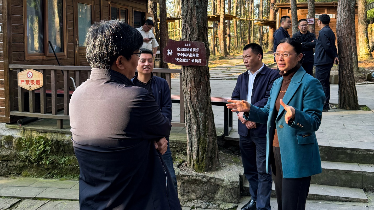 当天最后一站,调研团来到天马山国家森林公园。公园以马尾松、杉木为主,森林覆盖率达92.3%,负氧离子浓度达33563个/cm³,获评“国家级森林氧吧”。公园内建有10公里森林步道,沿途设有观景平台和休憩亭,游客可以漫步其中,欣赏层峦叠翠的自然景观,享受大自然的清新空气。来自巴中市秦川文旅公司的管理人员介绍,森林公园完全依赖旧的林场厂房和护林小径进行后期开发,在追求生态价值实现的同时,保证了环境保护。森林康养中心充分利用林下药物资源,开发出独具特色的药浴项目,实现了生态产品的有效利用。如今,森林公园已成为市民的避暑胜地,夏季吸引大量周边市民前来露营,夜晚的森林音乐会更是成为当地一大特色,极大地丰富了市民的休闲生活。这一发展模式充分体现了生态保护与经济发展的和谐统一,为山区生态旅游发展提供了成功范例。