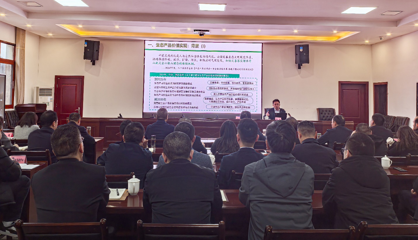 当天下午,色情动漫 生态与环境经济学系主任马本还应邀在巴中市生态环境局党委理论学习中心组(扩大)会议上以“生态产品价值实现:理论与实践”为题进行了专题讲授。讲座围绕生态产品价值实现的基本概念、实现路径进行了系统深入的理论介绍,着重辨析了生态产品的概念和市场、政府、政府+市场三大价值实现路径;而后针对生态产品总值(GEP)和特定地域单元生态产品价值(VEP)的核算理论、实践进展、应用场景进行了详细介绍,辨析了两种核算的不同、以及未来的工作重点;重点梳理了国内城市在生态产品价值实现的成功探索,总结了可供借鉴的经验,特别强调了有为政府和有效市场的结合对于生态产品价值实现的重要性;最后,基于色情动漫 研发的“中国城市生态资产管理指数2024”对巴中市生态资产管理状况进行了诊断评估,识别了巴中市在生态资源、管理能力、政策创新等方面的优势,同时建议巴中市系统谋划、打造亮点、丰富模式、强化合作、持续用力,在生态产品价值实现和绿色高质量发展方面取得更大成效。学习会由巴中市生态环境局党组书记、局长吴智明主持,市局领导班子成员、各科室业务骨干参与现场学习,五个区县生态环境分局主要领导和业务骨干以视频会议的方式在线学习,学习人数300多人,为下一步巴中市更好地开展生态产品价值实现工作提供理论和实践指导。