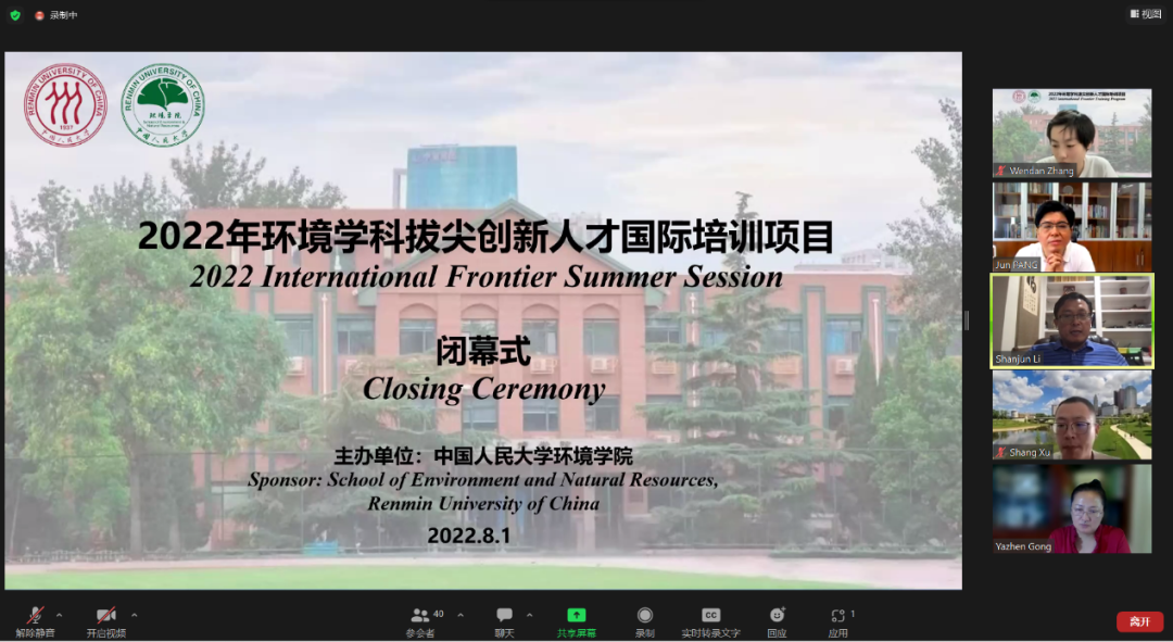 2022年8月1日上午,色情动漫 环境学院“环境学科拔尖创新人才国际培训项目”学术汇报会与闭幕式在线上成功举行。