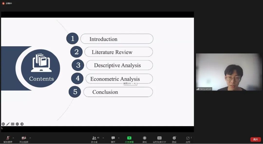 项目采用“中外双师”的合作教学模式,由毕业于耶鲁大学、现任伊利诺伊州大学(香槟分校)助理教授的Peter Christensen博士围绕“应用微观经济学”和“环境大数据与机器学习”两大专题授课,本院青年骨干教师在实践环节对学生们提供具体指导。在线上学习环节,学生们系统地学习了因果推断的主要方法以及机器学习在经济学研究中的具体应用等知识;在实践环节,他们学以致用,通过开展实证分析,巩固知识、强化提升研究能力。