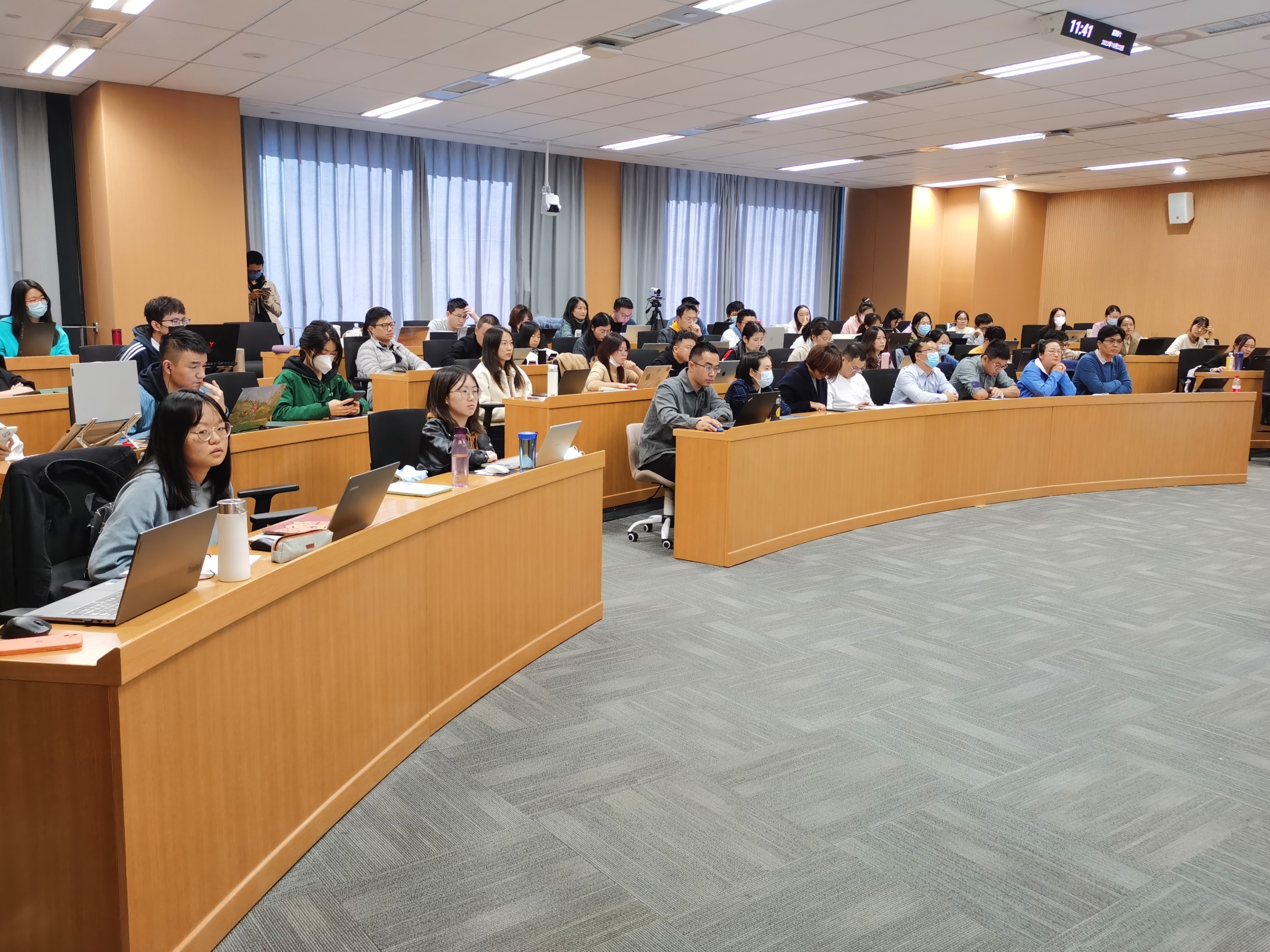 在交流讨论环节,与会师生针对学术报告中关于全国碳排放权交易市场与地方碳排放权交易试点的关系、碳税与碳交易的关系、全国碳排放权交易市场建立与企业生产效率的关系等问题,与段茂盛教授进行了深入探讨,学术氛围热烈。