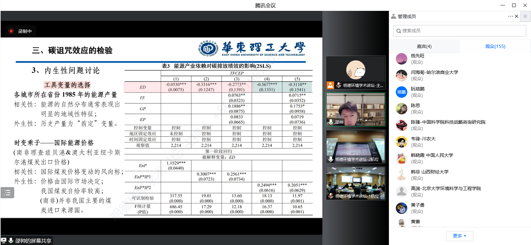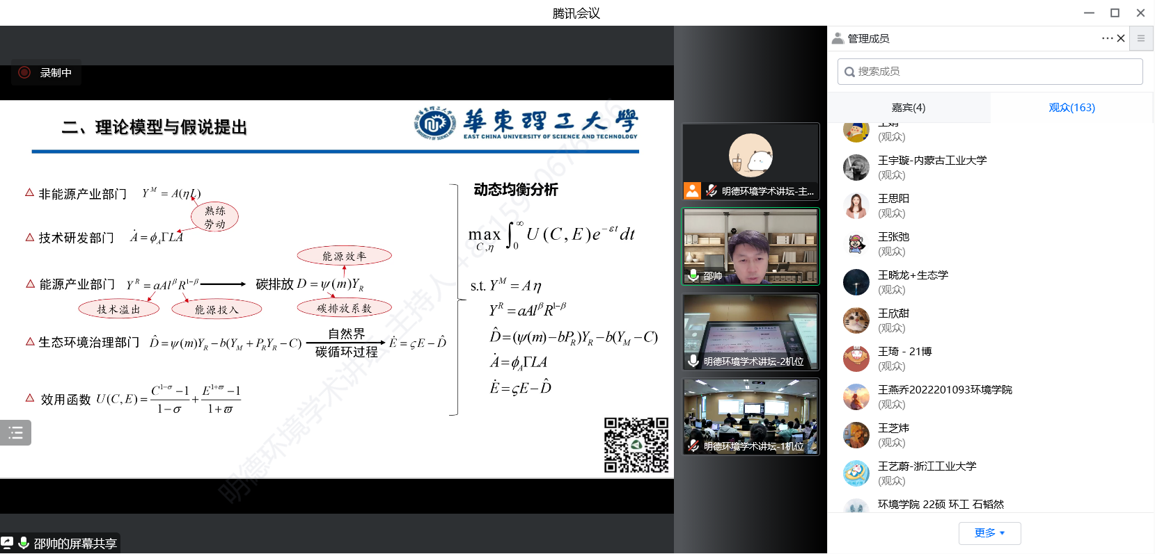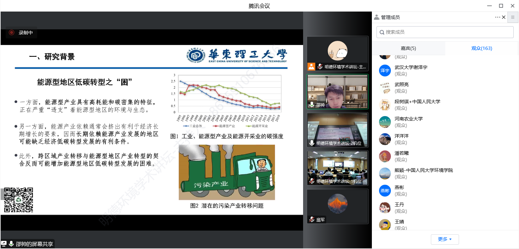 来自色情动漫 、华东理工大学、北京大学、武汉大学、哈尔滨工业大学、四川大学、华东师范大学、首都经贸大学、北京工业大学、生态环境部环境规划院等三十余所国内外高校、科研机构等部门的300余名师生及科研人员参加了本次讲坛。