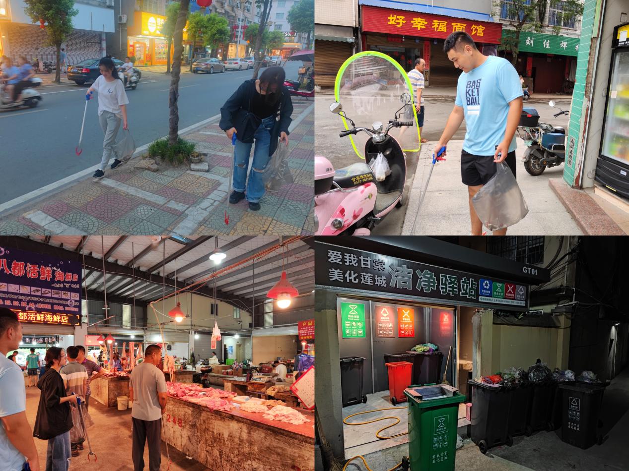 调研期间实践团队分为两组,以志愿者的身份分别参与了连续两天的巡查管理工作,通过亲身实践进一步体会甘棠镇人居环境整治工作的开展过程。每天早晚6:30--8:00,实践团队成员准时跟随值班人员前往镇区巡查,清理路面垃圾,并对乱停车、乱摆摊等行为进行记录或合理劝导。在这个过程中,实践团队体会到了人居环境整治工作的辛苦,也更深刻的认识到环境治理任重道远,只有提高全民环保意识,才能实现可持续的绿水青山。