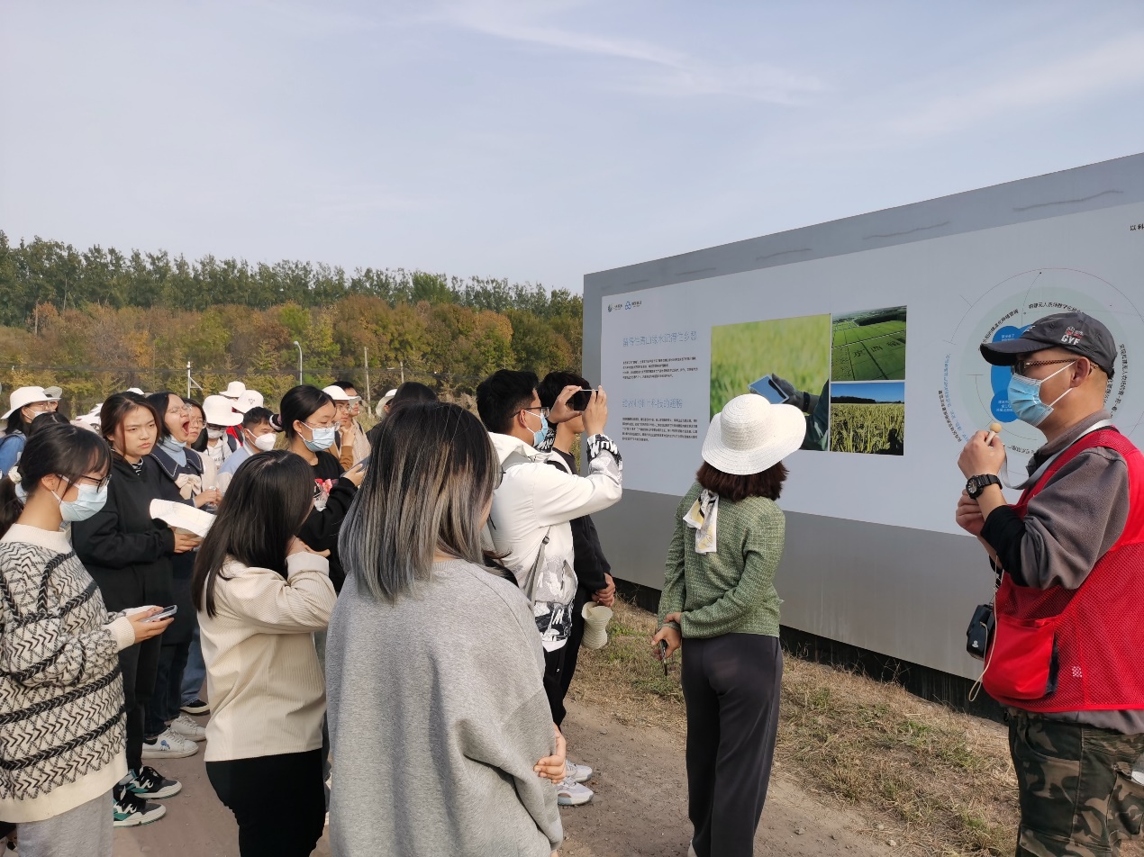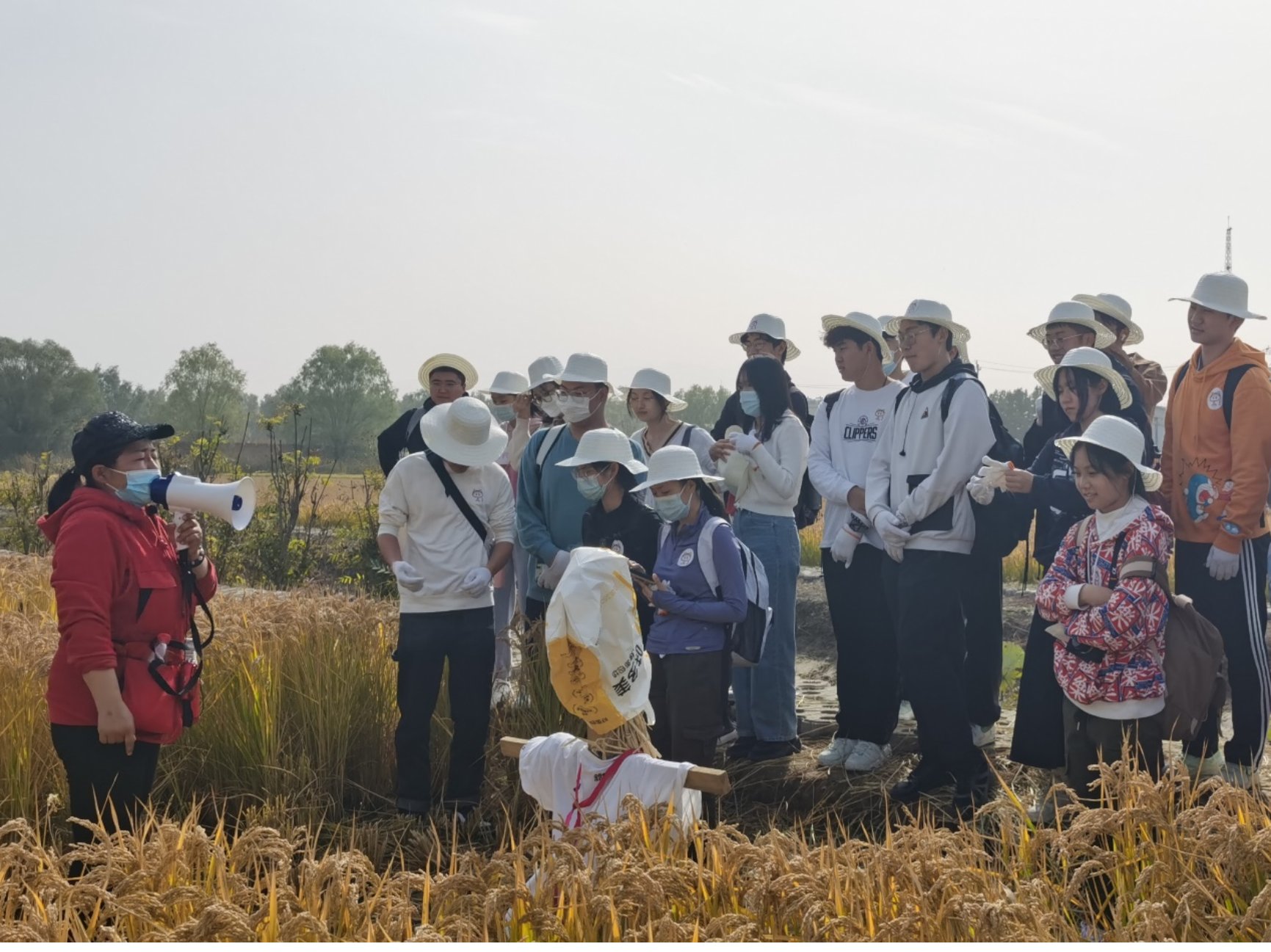 下午,全体师生来到京西稻保护性种植基地。同学们学习了水稻生物多样性保护的策略、生态环境要素对京西稻种植变迁的影响,了解了京西稻农业遗产与生态环境、经济社会和地区文化之间的关系。在京西稻博物馆,同学们在农产品加工的全过程中认识到农业废弃物循环利用的方式及其经济意义。