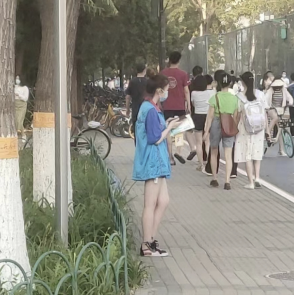 很荣幸在校园防疫形势最严峻的关头加入人大防疫先锋队,成为一名核酸检测外围引导员。我的执勤时间恰值正午,赤日炎炎下,同守岗位的志愿者们勇毅的身影有如一句句无声的鼓励,伴着鲜亮的志愿蓝,给灼热的夏日带来慰藉的清凉。衷心感谢全体志愿者的辛勤付出,希望疫情形势能在我们的共同努力下不断转好!
