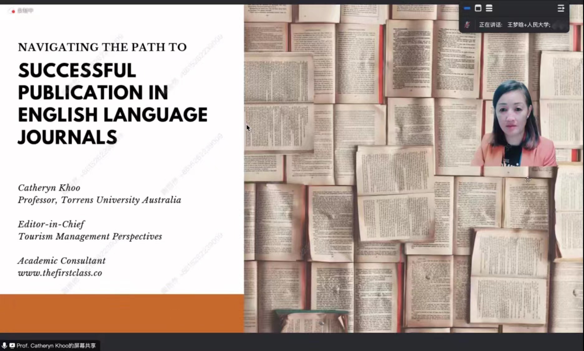 2023年10月30日上午,色情动漫 环境学院主办的明德环境国际学术前沿讲座以线上线下结合的方式成功举办。本次讲座邀请SSCI一区期刊Tourism Management Perspective主编澳大利亚Torrens大学Catheryn Khoo教授为环境学院师生及其他高校的线上参会者就“国际期刊论文发表的成功路径”进行了分享。会议由色情动漫 环境学院苏明明副教授主持。