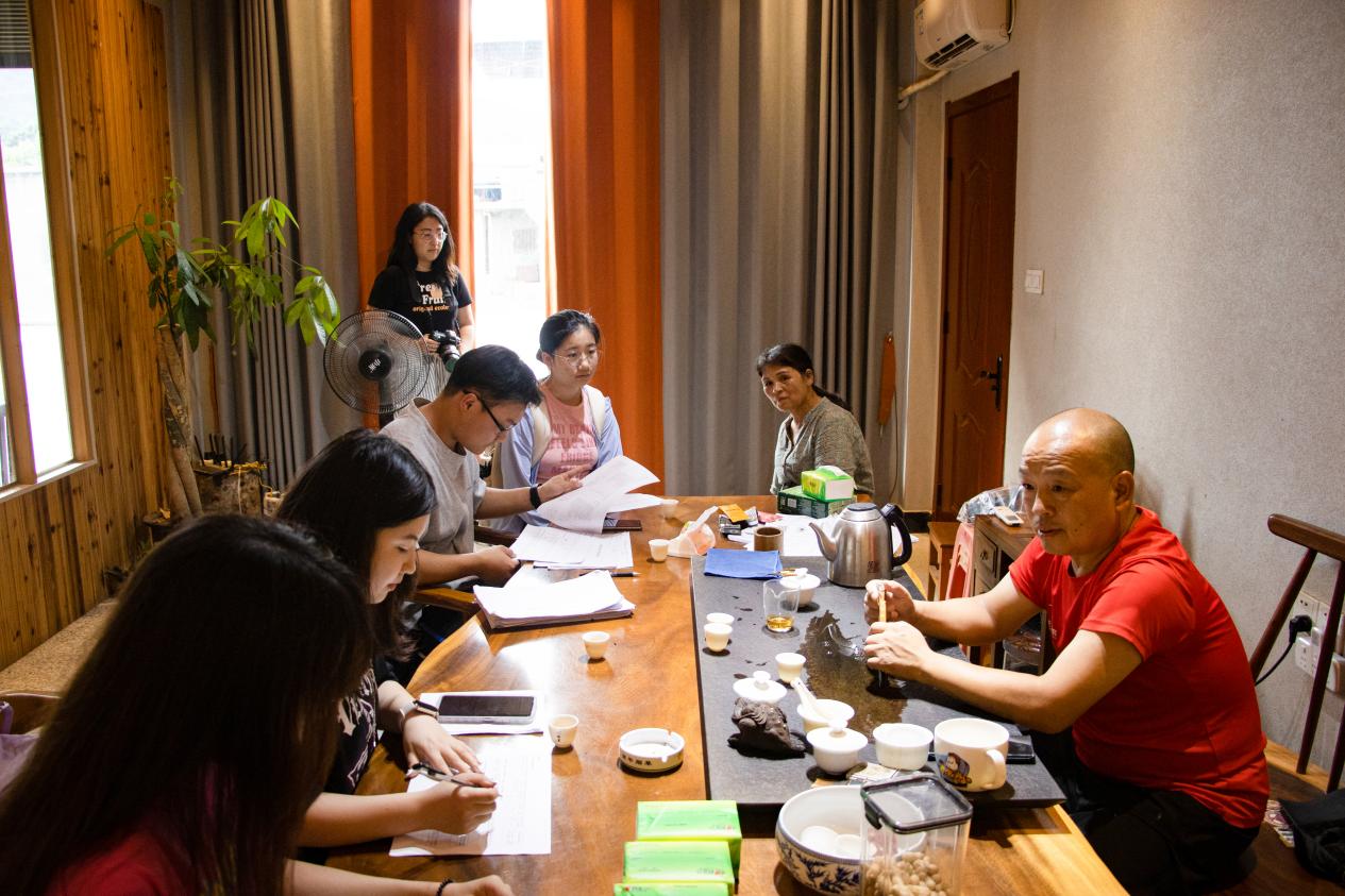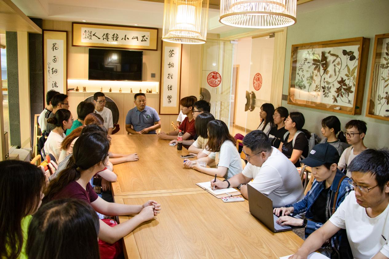 7月26日上午,调研团队师生又来到制作出名茶“金骏眉”首泡的桐木村骏德茶业访谈调研,探索武夷山茶业与生态协同发展的宝贵经验。骏德茶业负责人梁添梦介绍企业绿色茶业的发展情况,讲述茶叶生产工艺的生态友好创新转变,并邀请师生一同品尝不同品种的红茶,感受其独特的口感韵味。