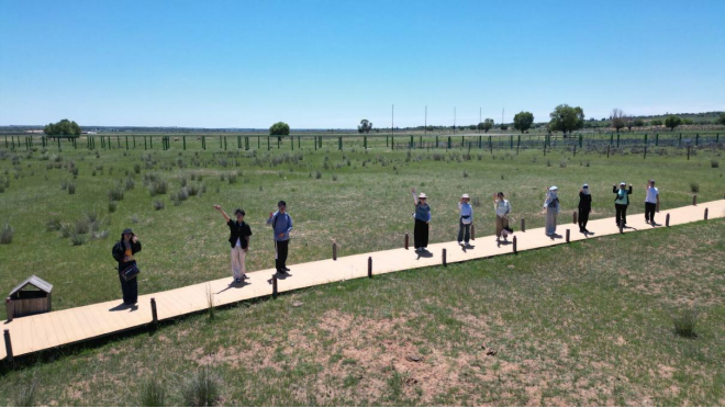 此次调研聚焦伊金霍洛旗生态文明建设与产业绿色转型领域,先后走访乌兰木伦镇、查干苏村、苏布尔嘎镇、鄂尔多斯现代能源研究中心、零碳产业园、苏泊罕草原等十余个调研点,通过实地走访、座谈访谈等方式,深入了解鄂尔多斯特色产业发展现状和绿色转型实践案例。通过深入调研,师生们也看到了这座城市并非停留在“资源依赖”的固有标签里,而是在脚踏实地开辟“新路”,既守住产业根基的“稳”,又抓住绿色发展的“进”,用持续的创新推动传统能源产业转型升级,坚持走绿色发展之路,为同类城市的转型升级提供了鲜活样本。