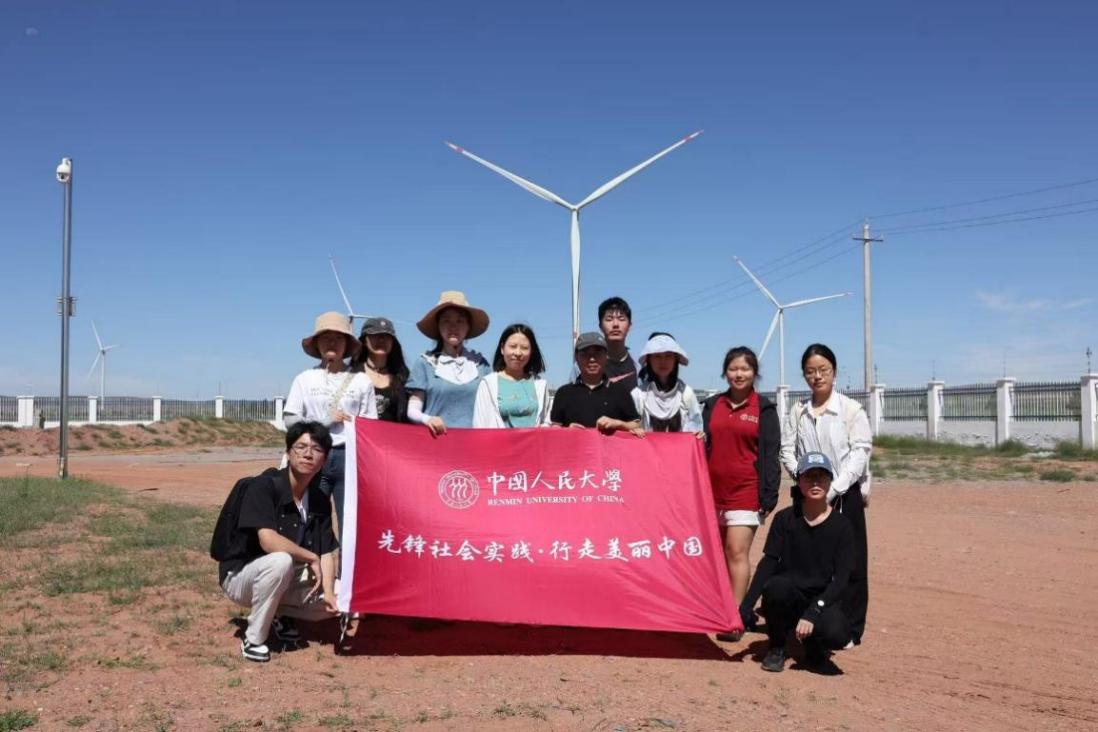 实践团前往内蒙古鄂尔多斯市伊金霍洛旗苏泊罕草原调研生态旅游发展现状,前往红庆河镇调研珠兰敖包村风光储一体化项目,围绕生物多样性保护、自然资源利用等进行深入交流与学习。