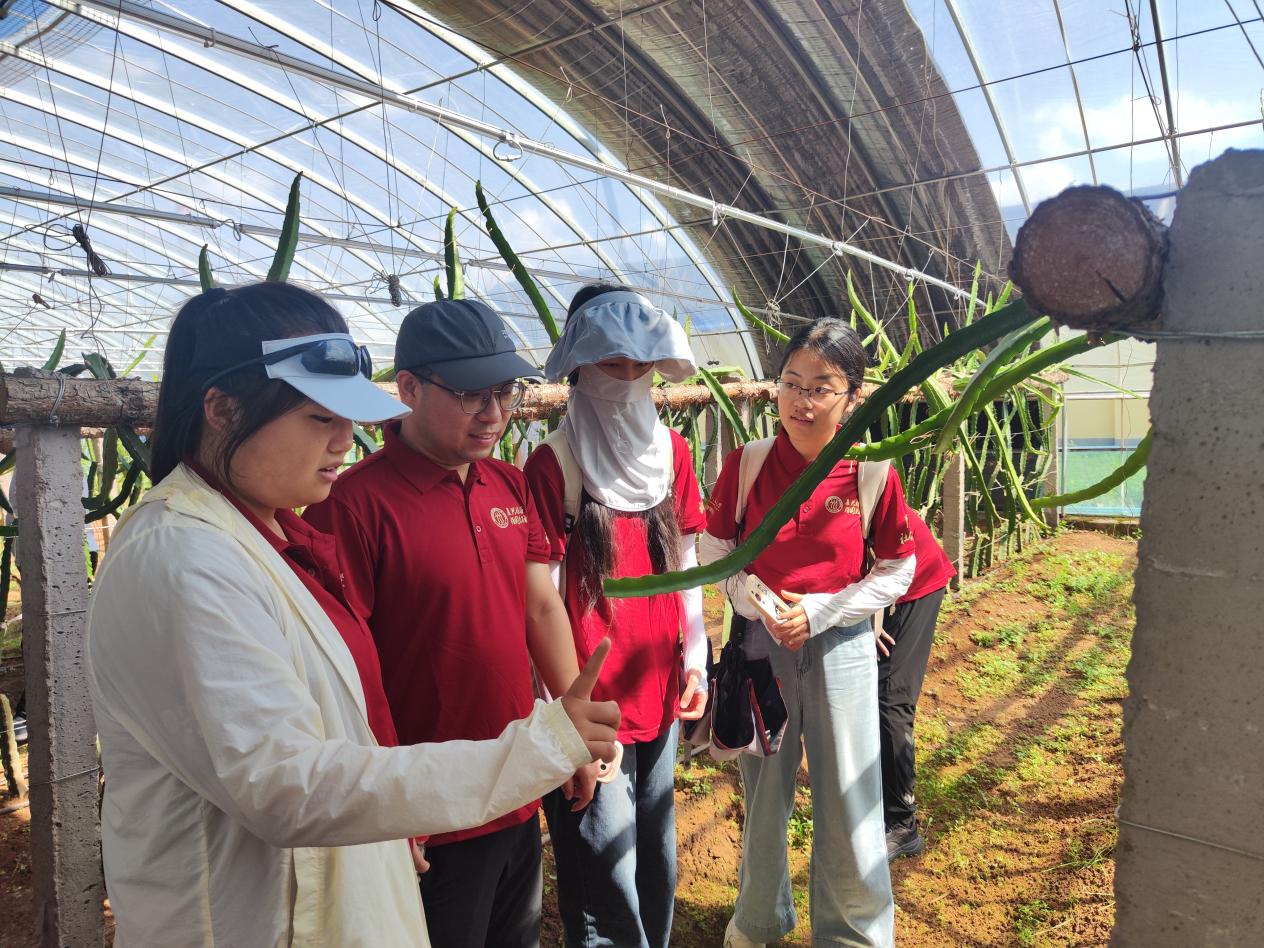 调研团师生前往查干苏村,考察昌茂绿怡生态农场项目。温室大棚里,果蔬长势喜人,现代农业技术的深度应用,正悄然重塑着传统农业生产模式。园区坚守生态种植理念,依托科学化管理,持续优化产品品质,有效拓宽了村民增收渠道。实践团师生走进大棚,查看果蔬生长情况,询问种植技术、市场销路和生态管理措施。自由观摩时,大家对农场“不打农药、少用化肥”的理念表示认同,认为这是生态农业的好样板。