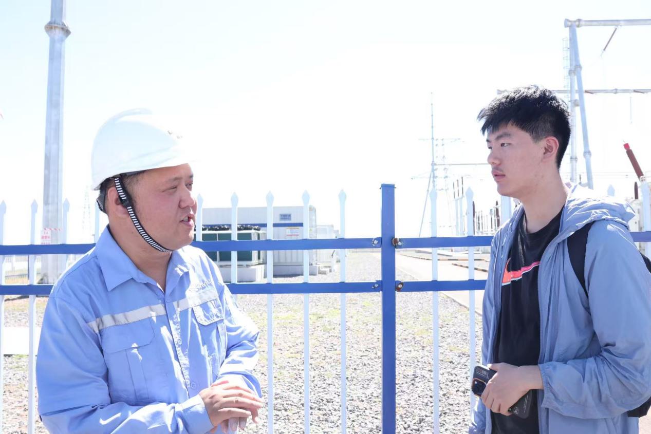 交流过程中,项目负责人为实践团师生科普了新能源的发电原理与用电机制。他表示,这一模式效率高,污染少,在满足基本电力需求的同时提供千人就业岗位,带动周边地区的发展。未来,该项目将加大技术研发力度,进一步向远海拓展,并积极响应“一带一路”倡议,向国际迈进。经过调研,师生了解到,该项目不仅是推动鄂尔多斯市及内蒙古自治区能源绿色低碳转型的重要实践,也是构建新型电力系统、探索“双碳”目标实现路径的关键一步,为当地带来了显著的经济、社会和环境效益,具有重要的示范和引领作用。