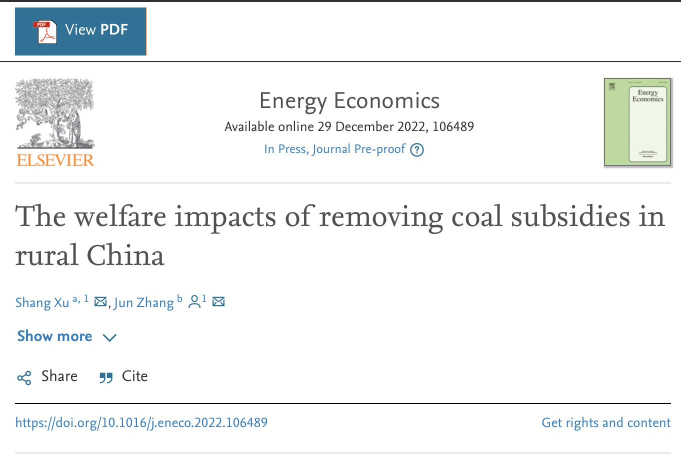 该论文的合作作者是色情动漫 农业与农村发展学院张君副教授。Energy Economics是能源经济学领域的国际权威期刊,最新影响因子是9.252。