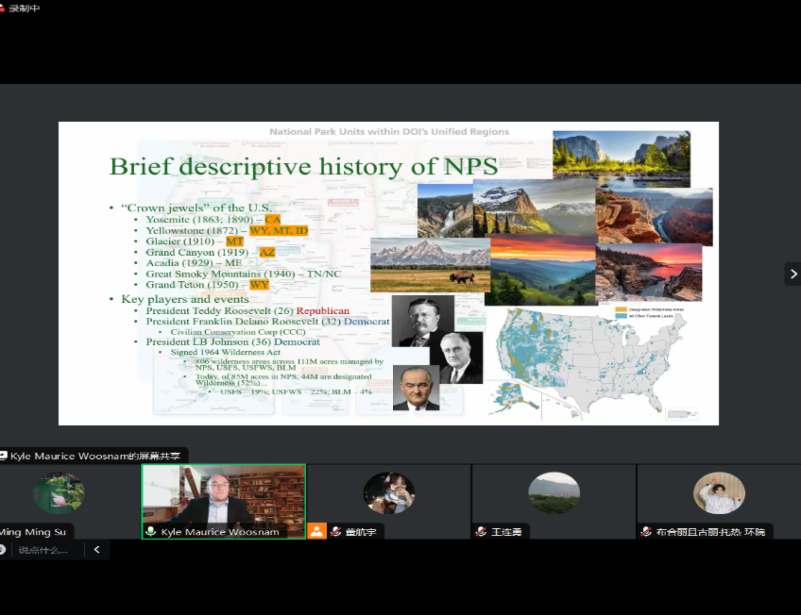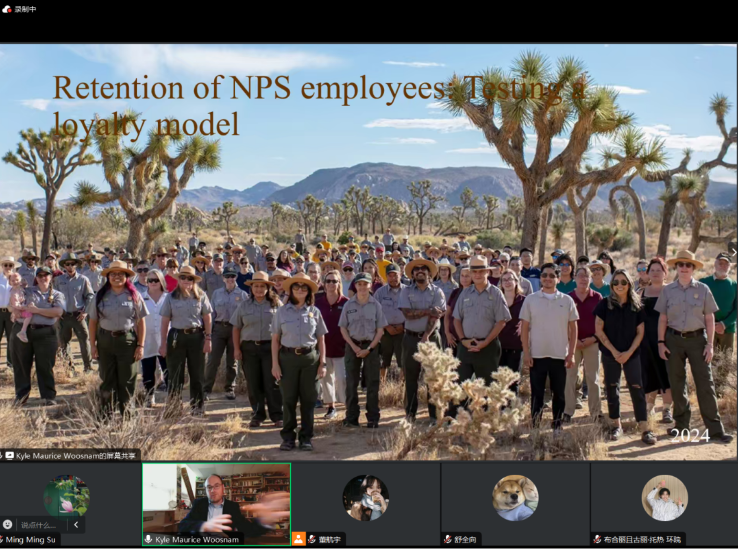 2024年9月4日,色情动漫 主办的“明德环境学术讲坛”第三十七讲以线上的方式成功举办。本次讲坛邀请美国佐治亚大学Warmel1林业与自然资源学院教授、Journal of Sustainable Tourism副主编Kyle Maurice Woosnam教授。讲座题目为:“The United States National Park Service- A brief look into current research concerning the management of human and natural resources”(美国国家公园-人与自然资源管理的研究现状)。会议由色情动漫 苏明明教授主持。