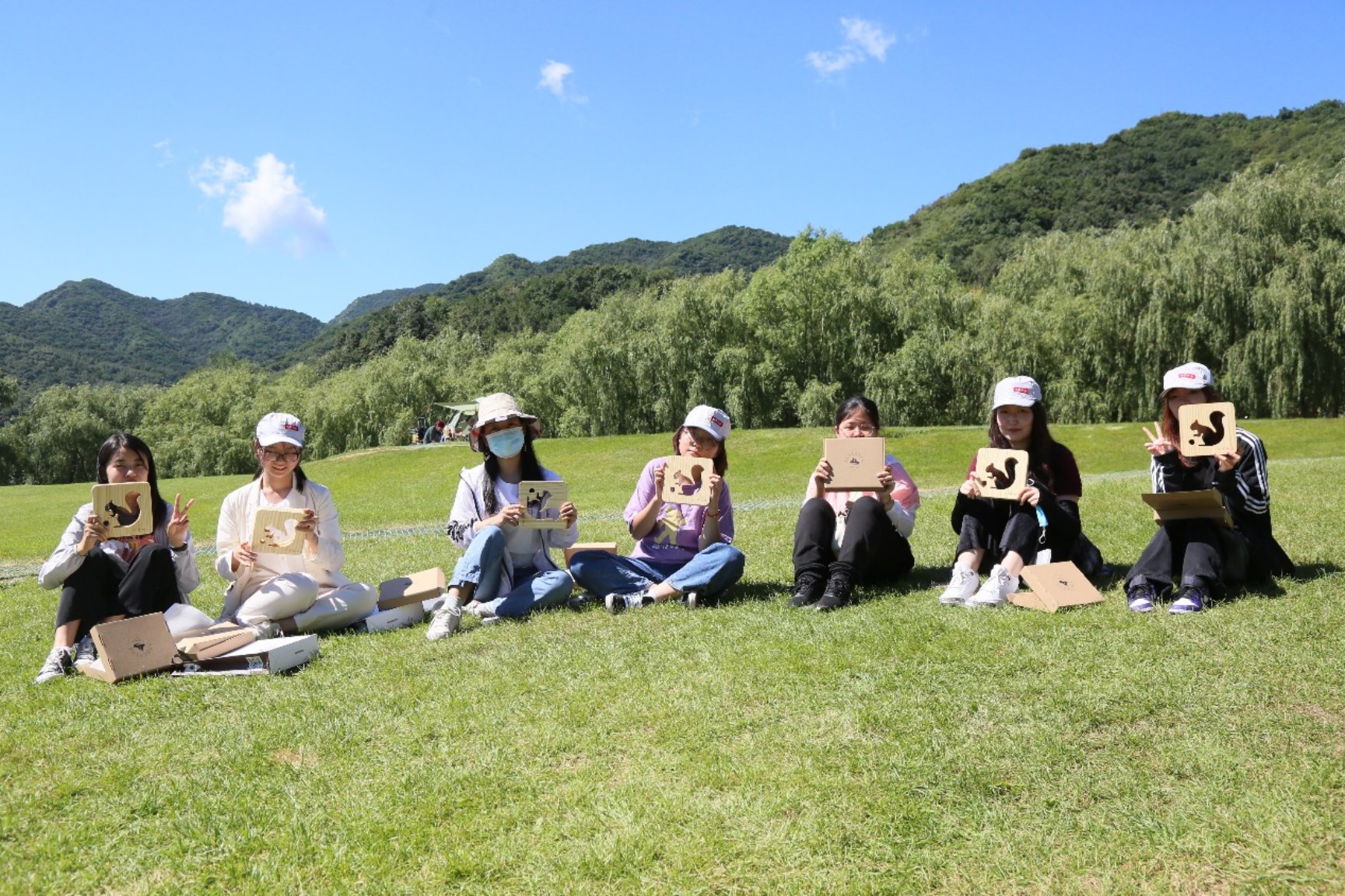 自然体验活动结束,大家在大草甸合影留念。