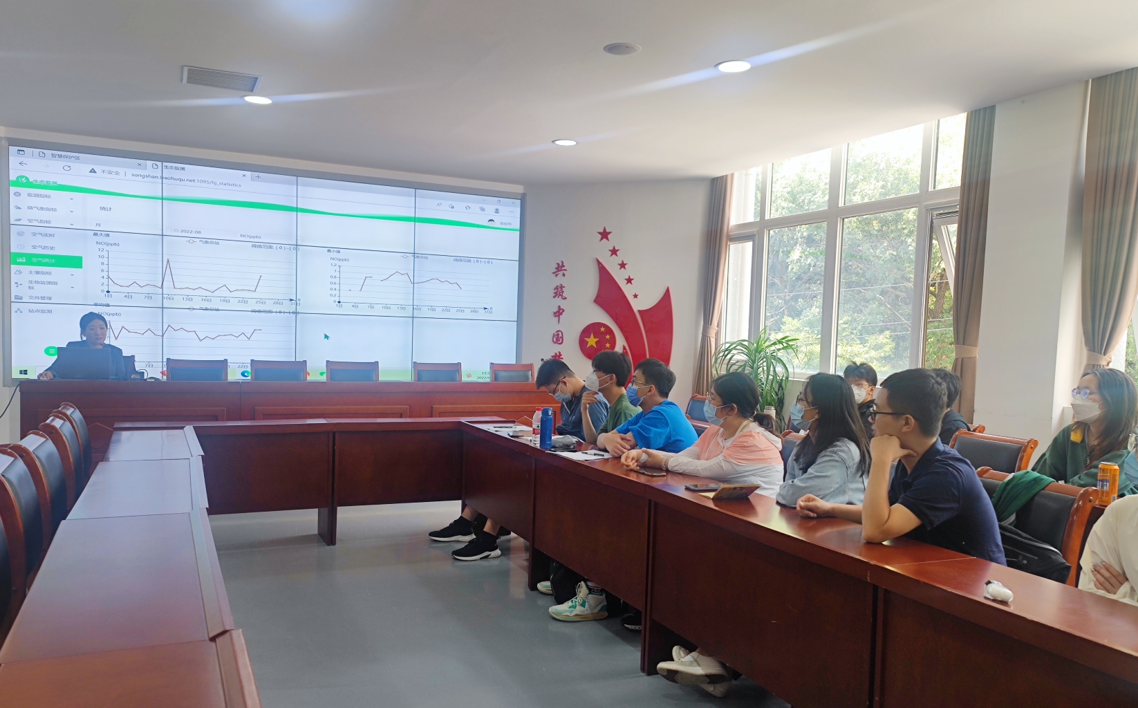 检测保护科负责人向师生介绍松山环境监测情况