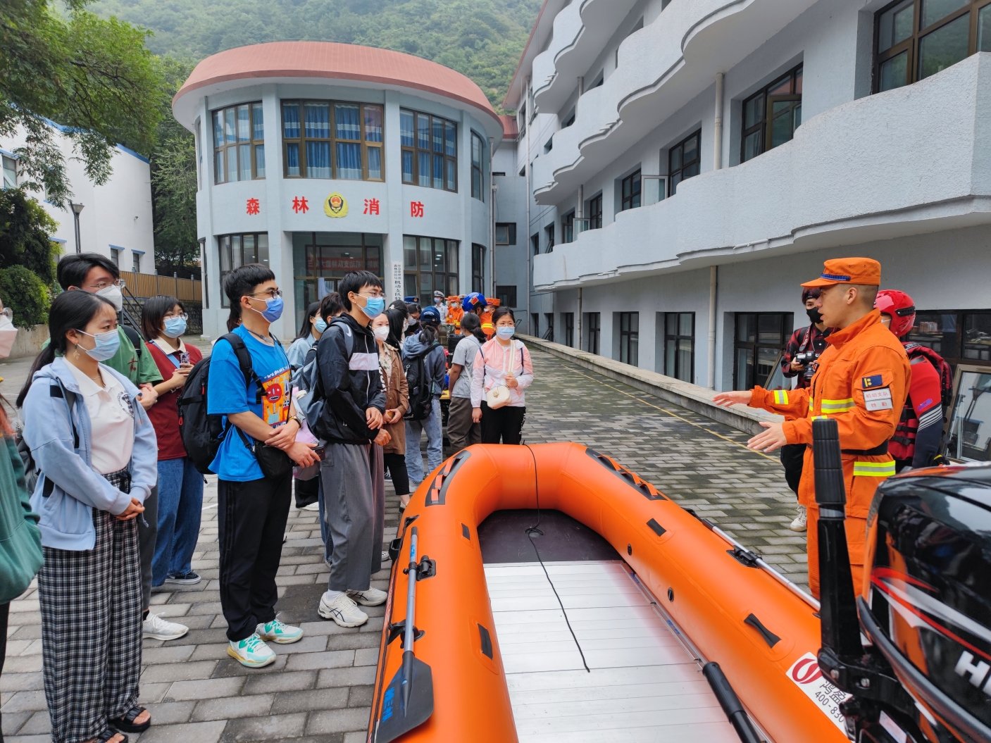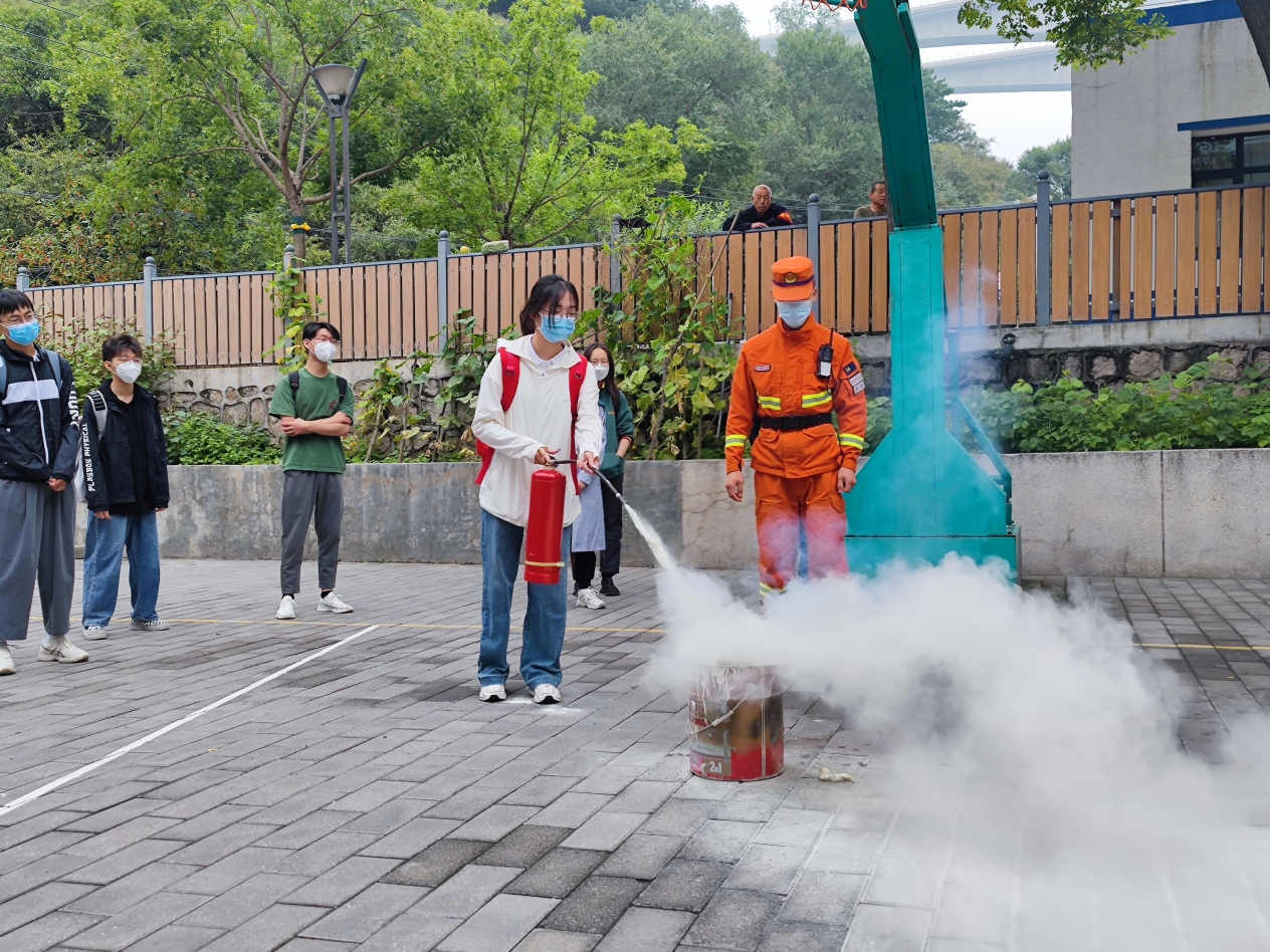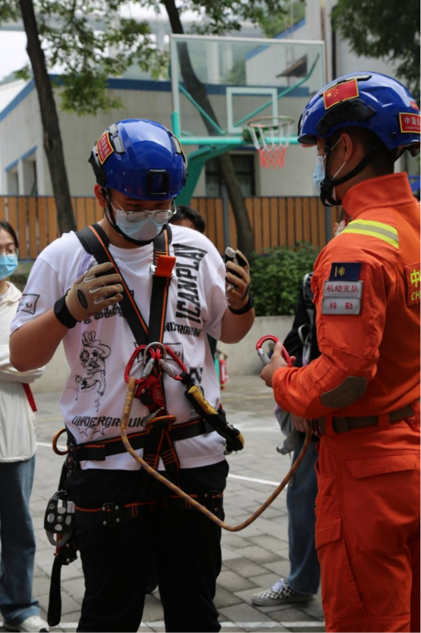 标本馆参观结束后,实践团队来到了北京松山国家级自然保护区消防大队所在地。消防队员们详细地为全体成员介绍各类消防装备,从灭火器到救援绳栓,从救援头盔到救生服,师生们对森林防火的艰难与辛苦有了更深一步的了解。