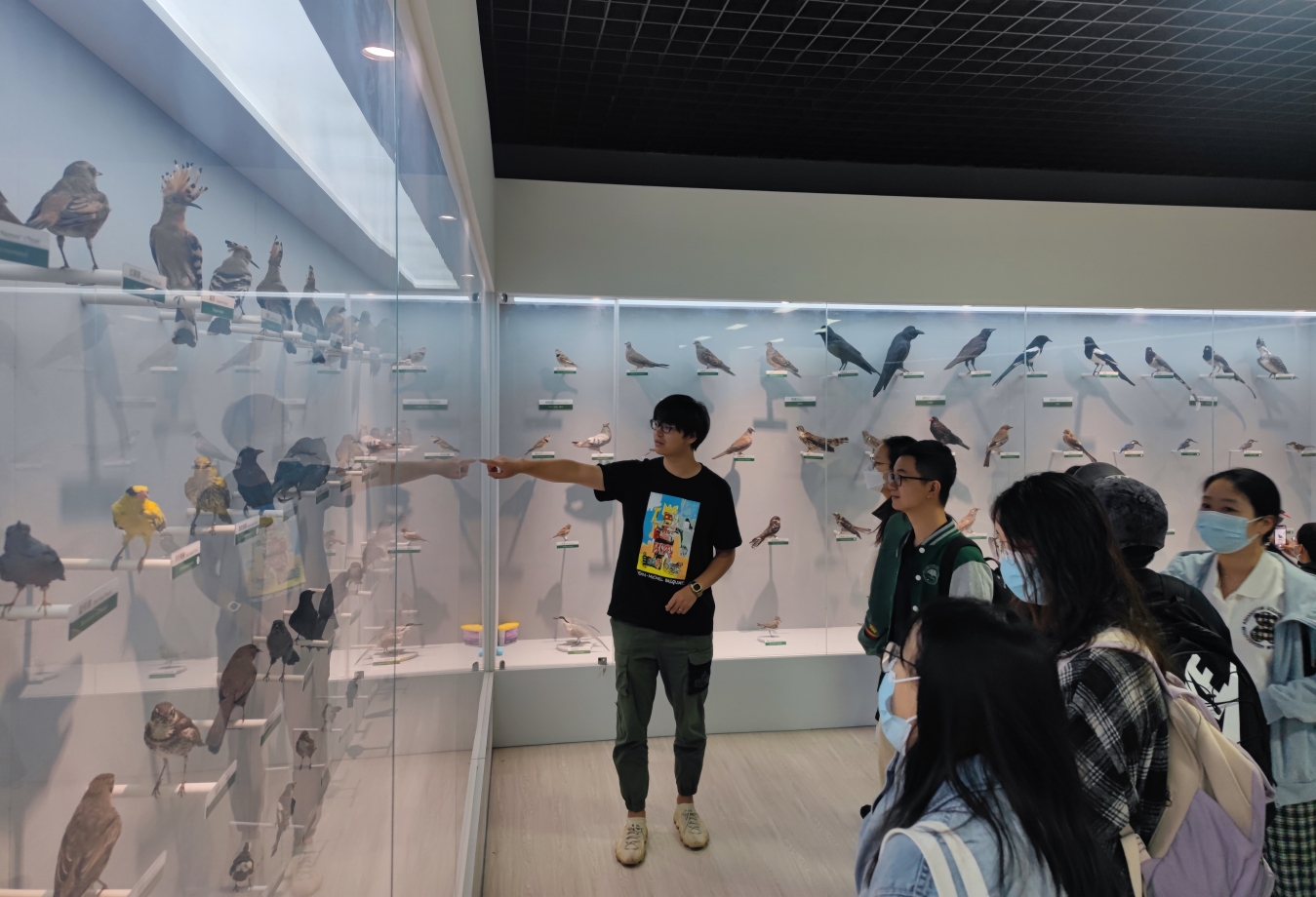 随后实践团队来到松山自然保护区标本馆,在讲解员的带领下更加真切地见证了松山的生物多样性,一件件动物标本栩栩如生,展现着松山丰富的生物种类。在工作人员细致热情的介绍下,同学们不仅认识了更多动植物,还深刻认识到了保护生物多样性对人类生存和发展的重要性。同学们积极提问,收获良多。