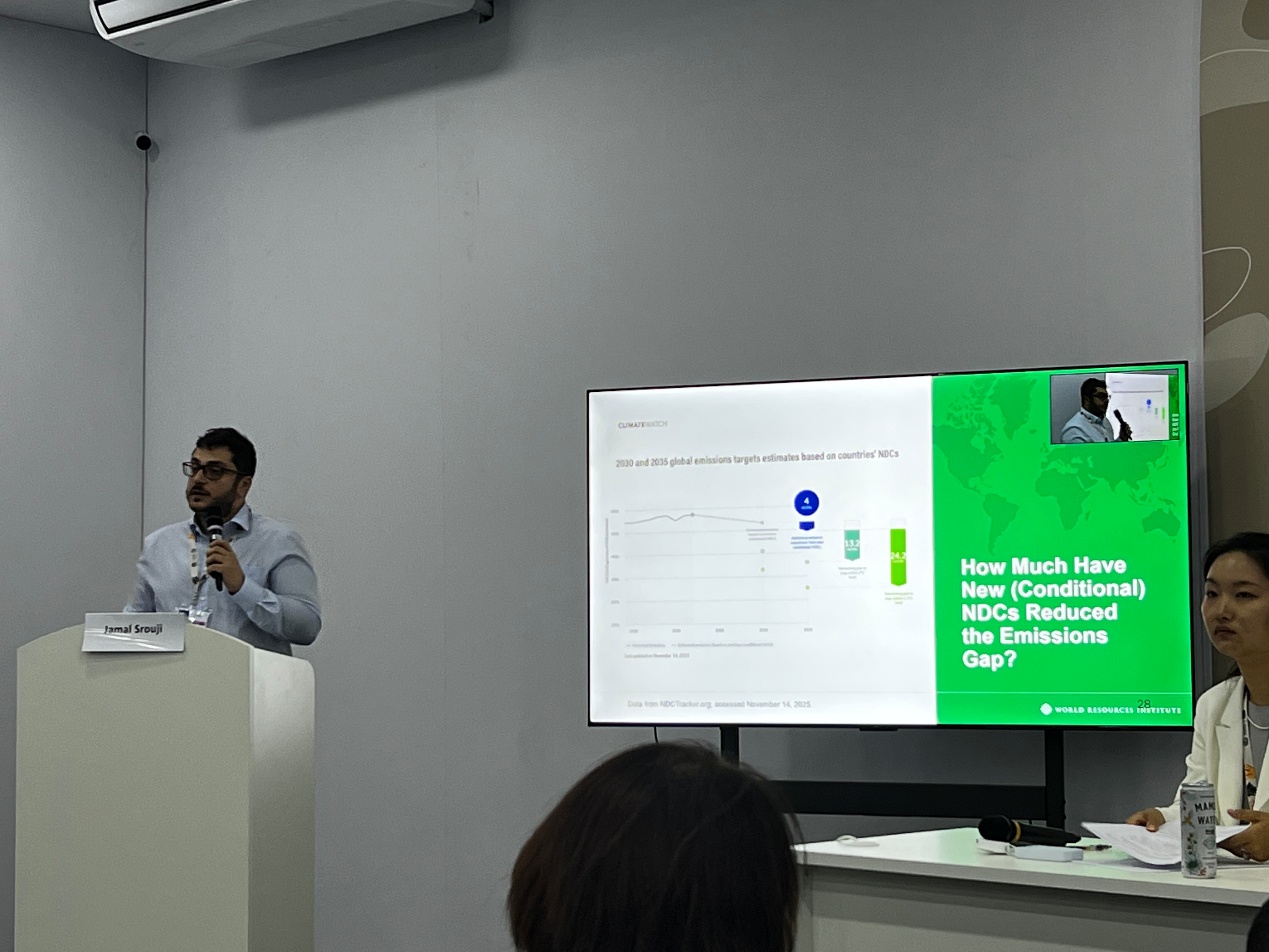 圆桌讨论呈现了数据、政策、全球南方与青年视角的多维对话。WRI中国代表处首席代表方莉指出,全球与中国的转型都聚焦于电力、工业、交通、建筑等关键领域,进展追踪既要看减排量等结果指标,也应关注政策执行、技术成熟度等过程指标,同时必须充分尊重不同国家的发展阶段与结构差异,推动本地化路径落地。中山大学大气科学学院院长、Future Earth 全球秘书中心(中国)主任董文杰强调,数据鸿沟本质上是执行与行动的鸿沟,完善气候数据基础设施是一项跨越多个COP的长期工程,需要持续强化跨部门、跨学科的协作。出生于贝伦、长期在中国工作的 BellaTerra Consulting CEO Tess Isabel Nepstad Antunes 提到,许多全球南方国家正从中国的能源转型和数据体系经验中受益,南南合作在缩小数据与执行差距方面至关重要。加纳ACE谈判代表、加纳环境保护局的 Kassim Hussein 指出,发展中国家普遍面临数据不足、机构能力有限和融资不稳等挑战,气候数据只有真正用于政策制定和实施才具有价值,亟需长期稳定的国际伙伴关系。青年代表周全分享了“气候一代+AI一代”的行动思考,强调青年在AI赋能的数据创新中发挥日益重要的作用,同时也需关注隐私与伦理问题,推动负责任的数据使用方式。
